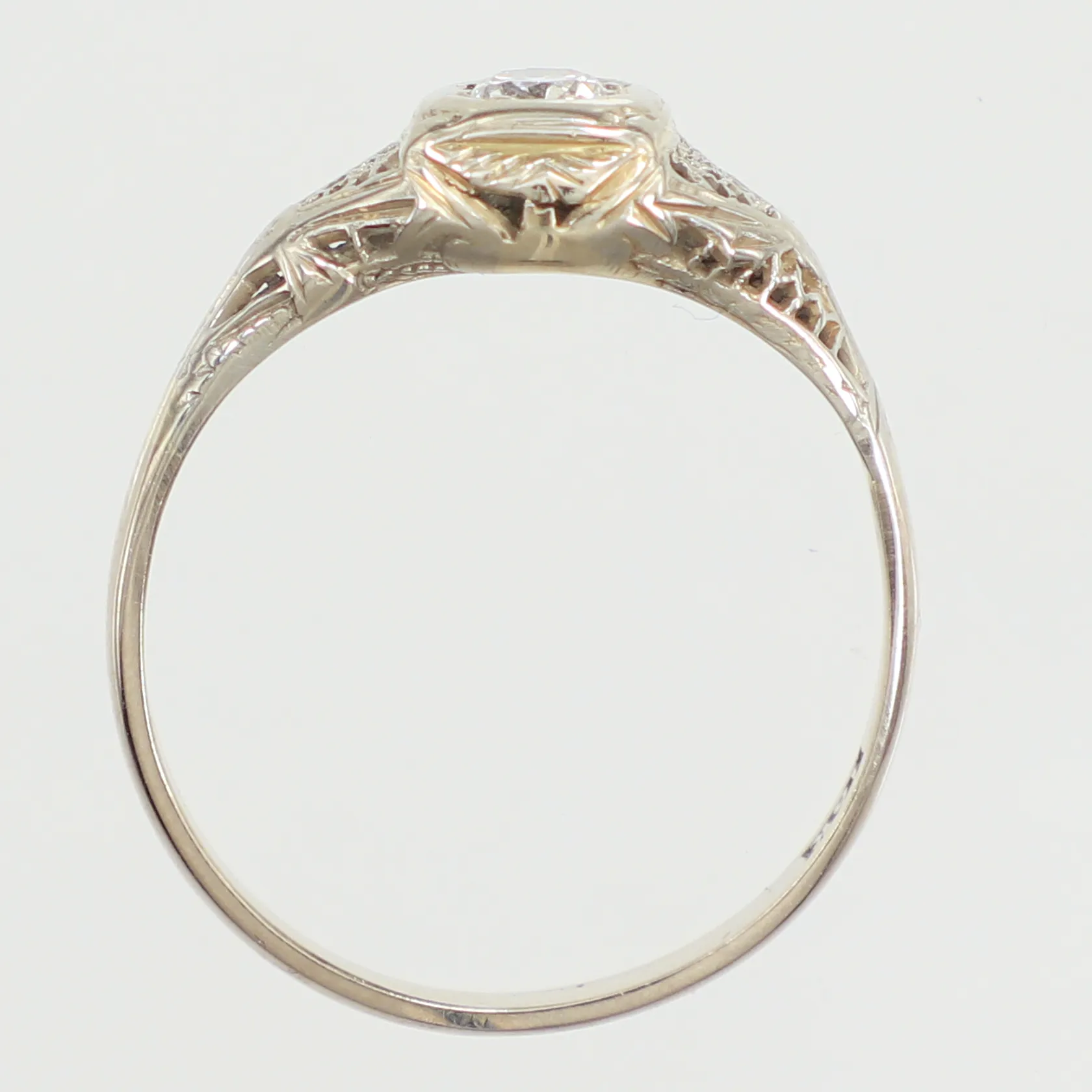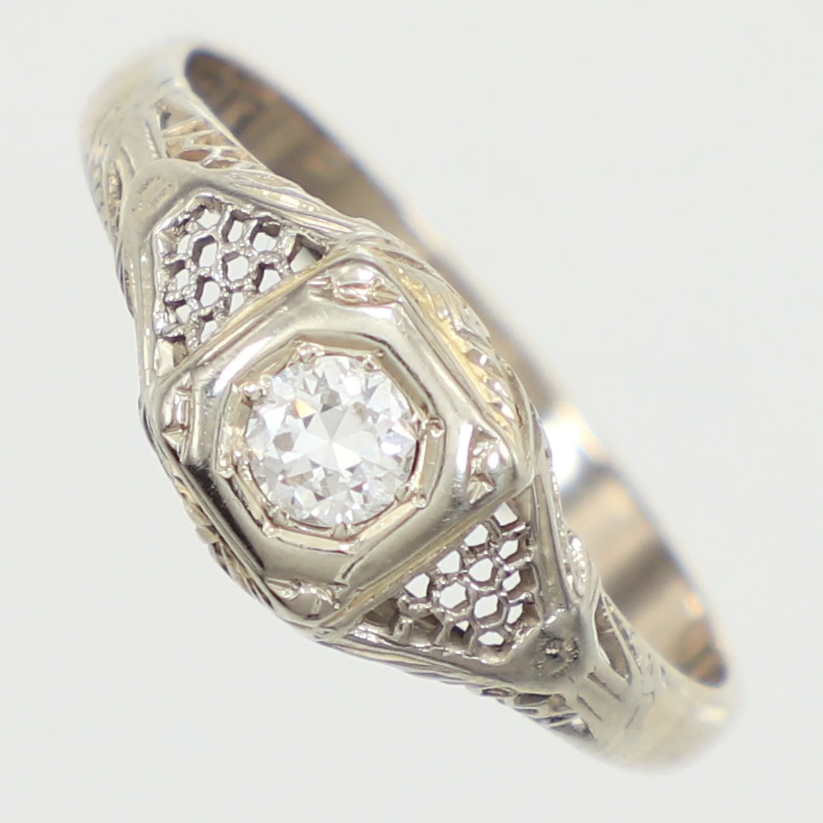 Ring med gammalslipad diamant, ca 0,20ct, stl 18¾, bredd 2,6-7,8mm, vitguld, 18K Vikt: 2,6 g.