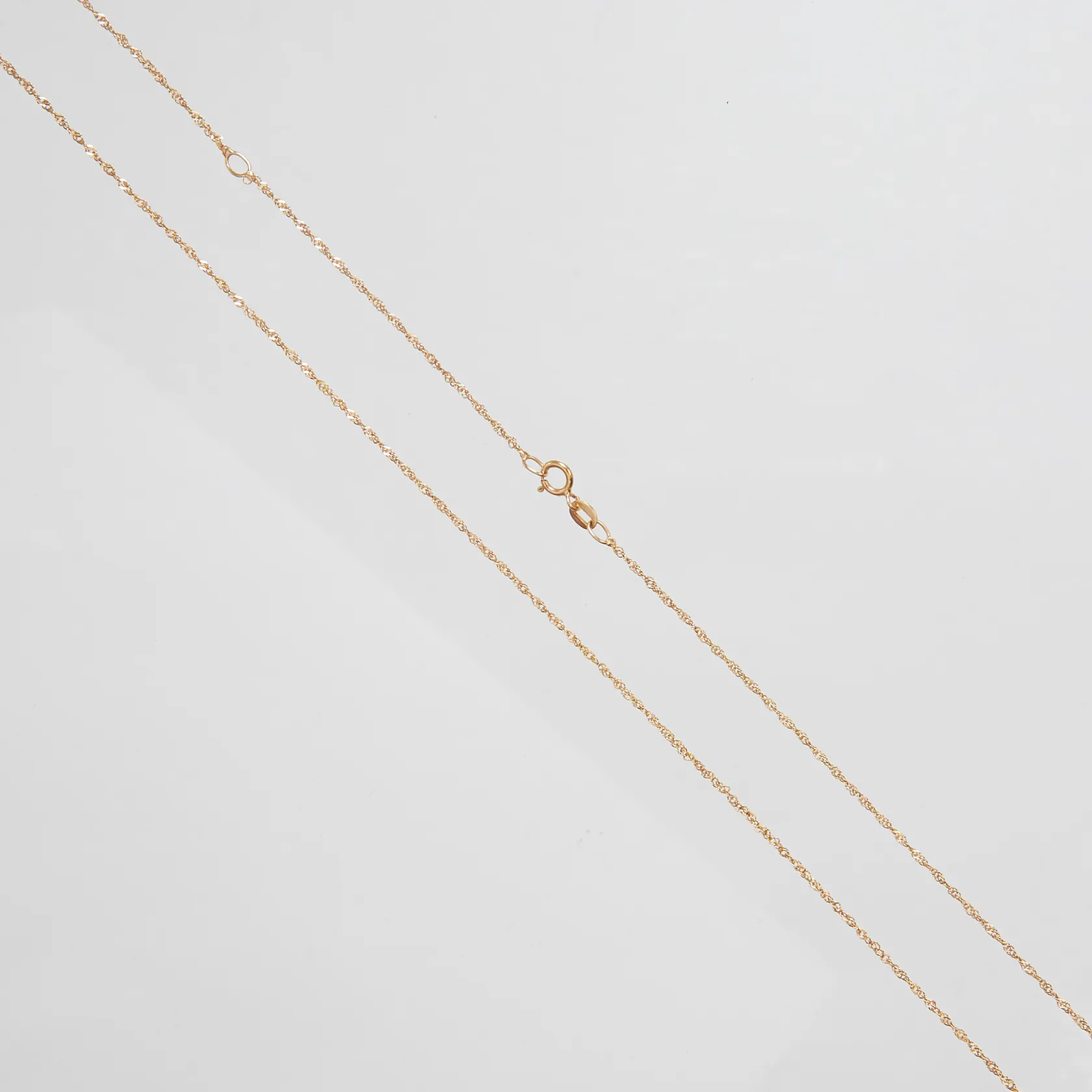 Kedja Singapore, längd ca 43,5+48,7cm, bredd 0,6mm, 18K Vikt: 1,1 g.