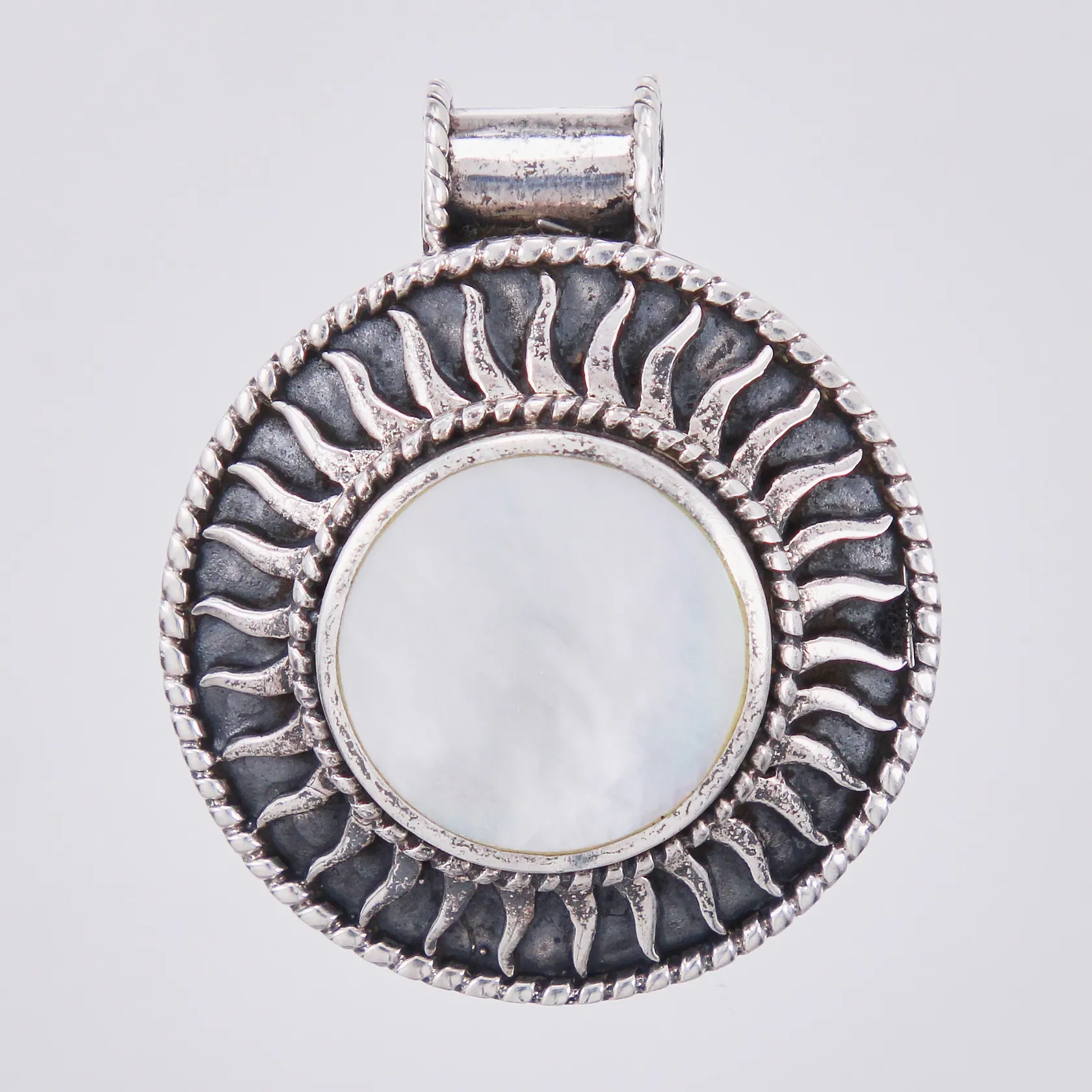 Hänge med pärlemor läng: ca 4cm Ø ca 33mm GHA 925/1000, silver Vikt: 16,5 g.