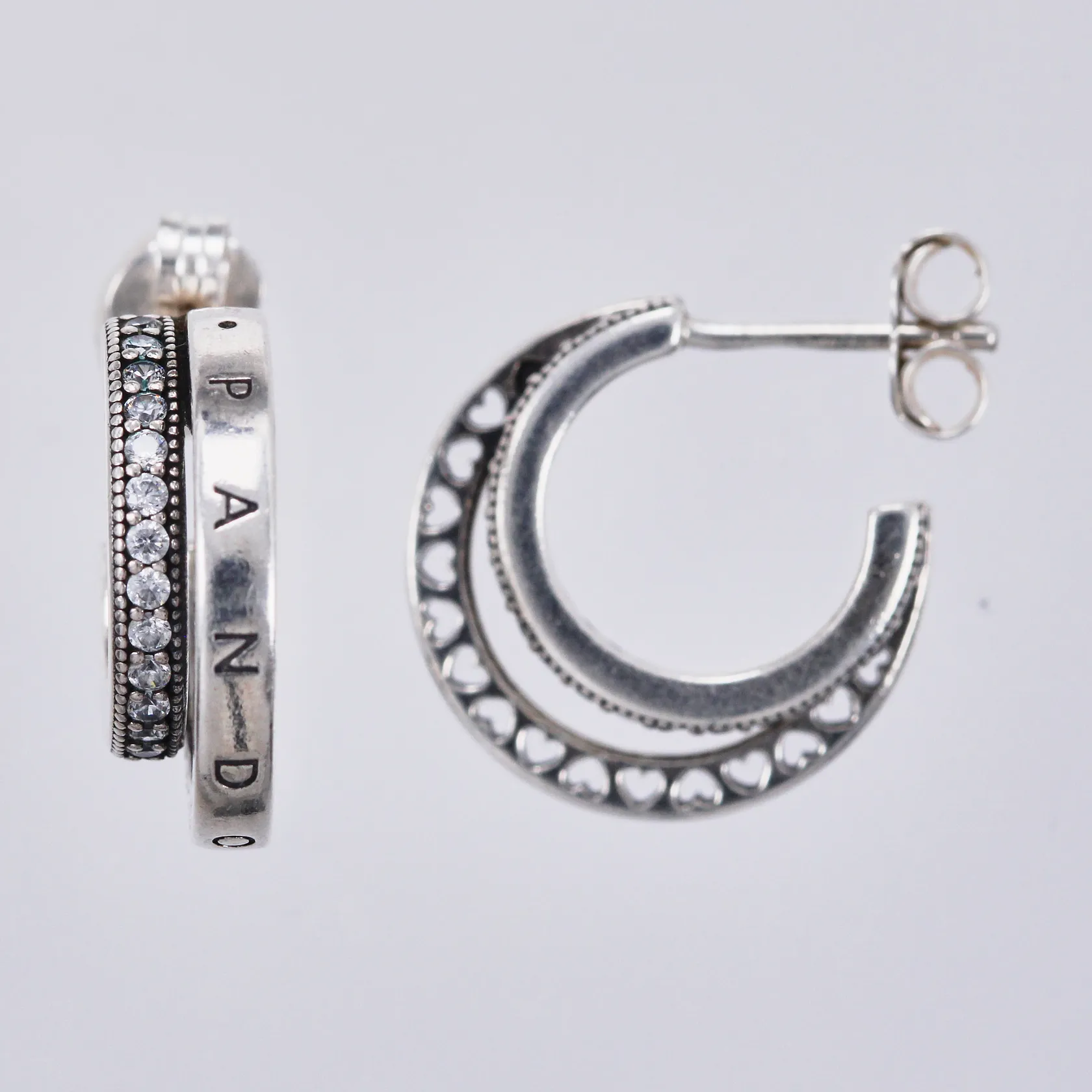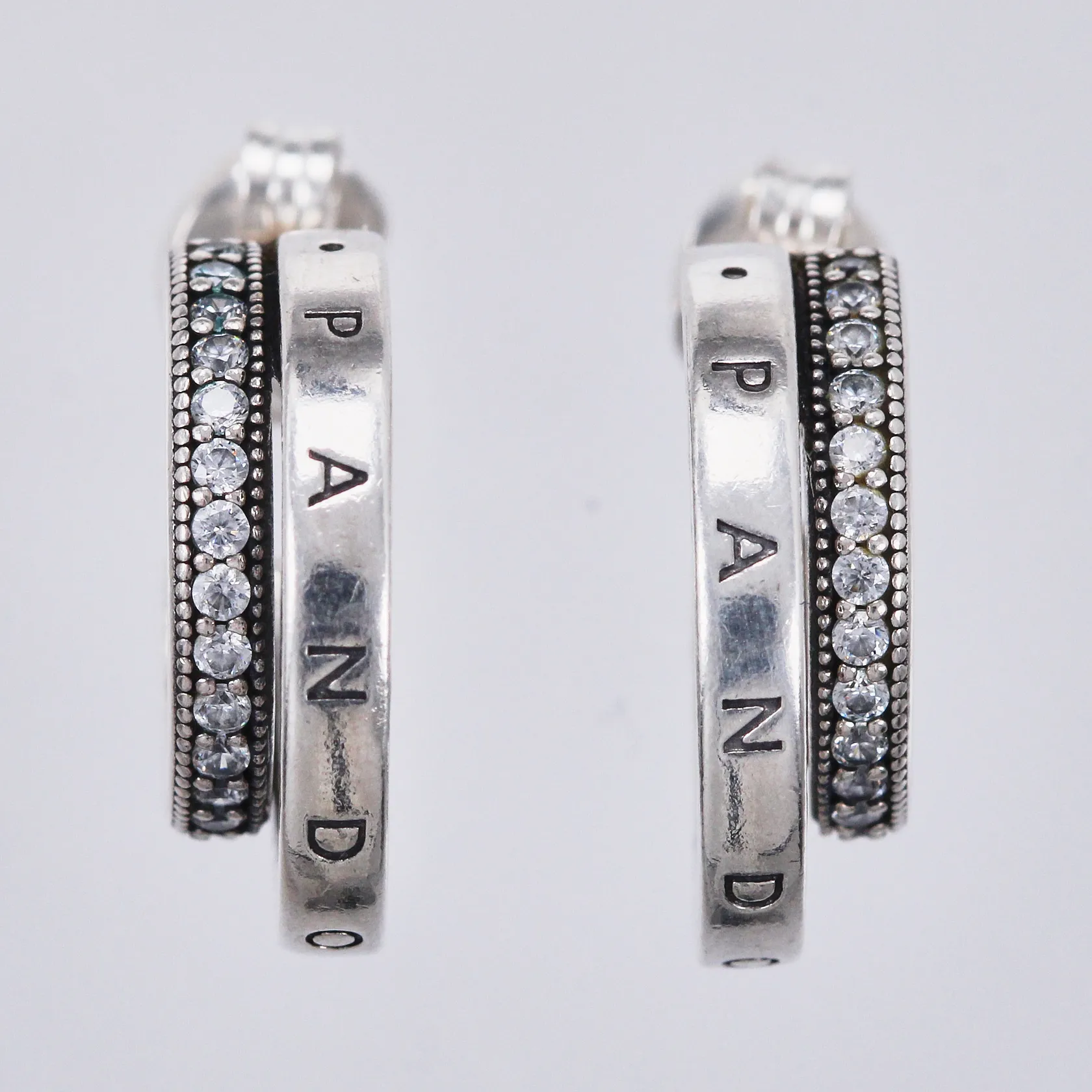 Ett par örhängen Pandora med vita stenar Ø ca 13-16mm bredd ca 5mm 925/1000 silver Vikt: 5,1 g.
