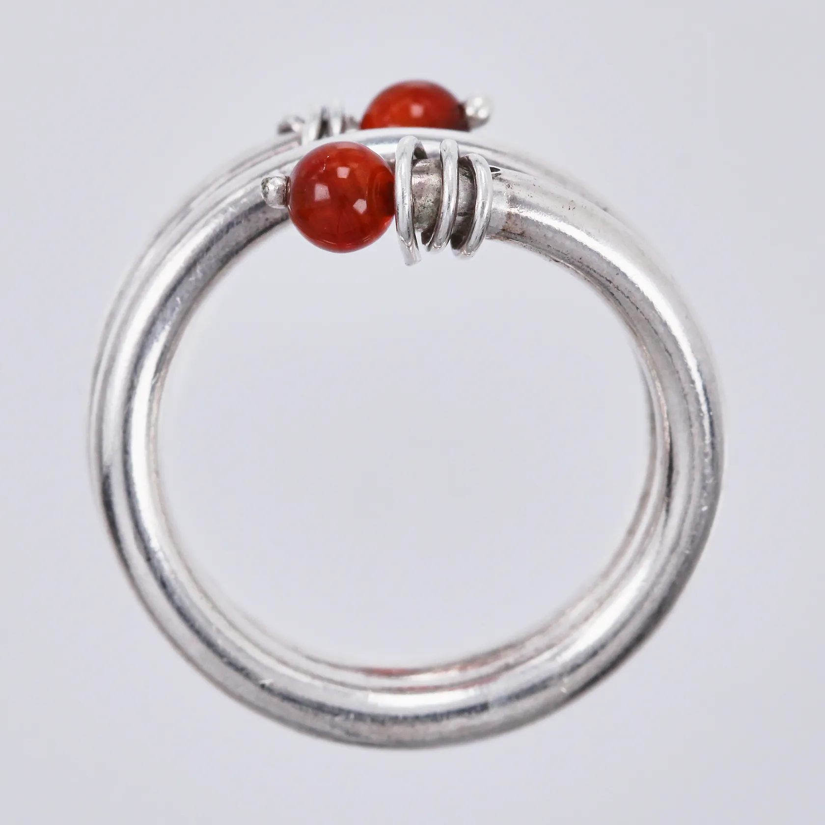 Ring med orangea stenar stl ca 18 bredd ca 5-15mm 830/1000 silver Vikt: 5,4 g.