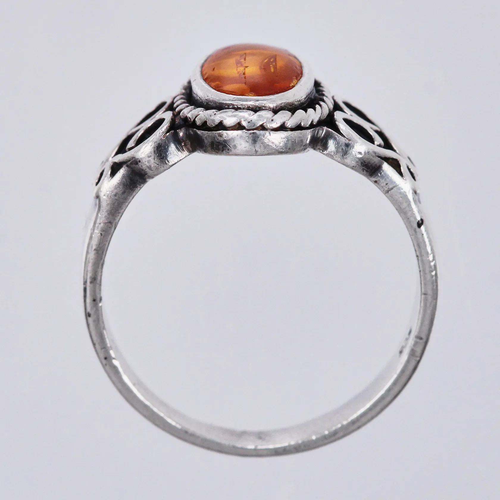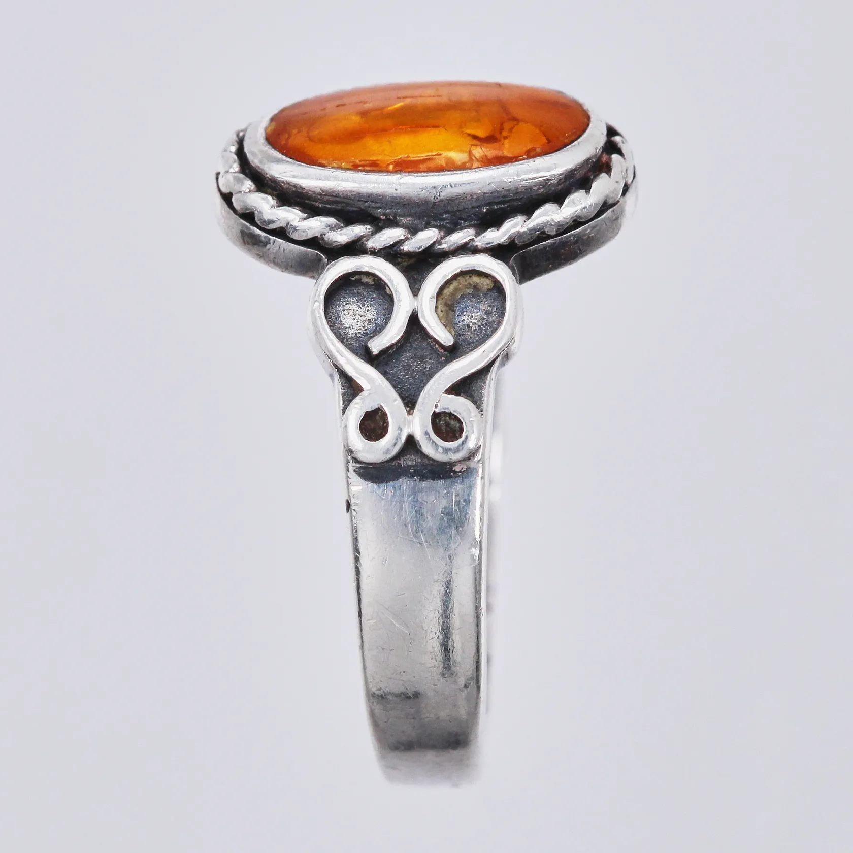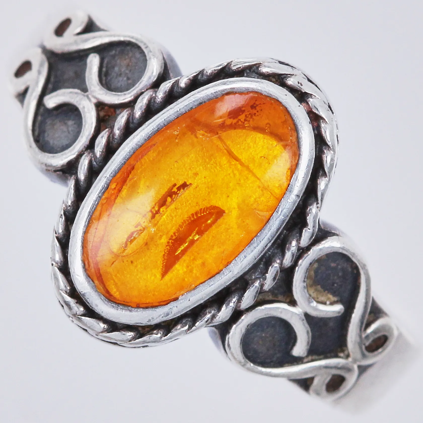 Ring med bärnsten stl: 17¼, bredd: ca 3-12mm, 925/1000 silver Vikt: 4 g.