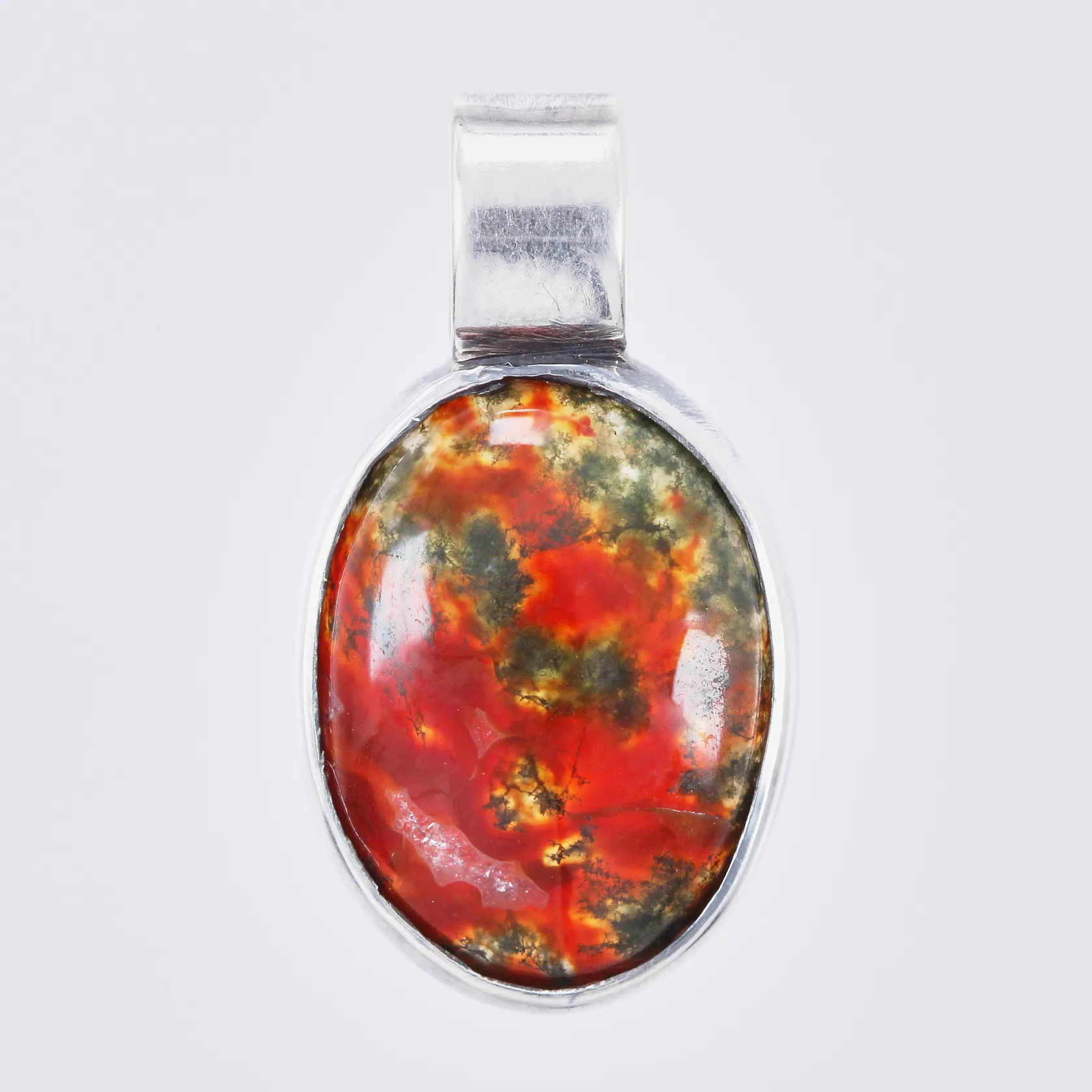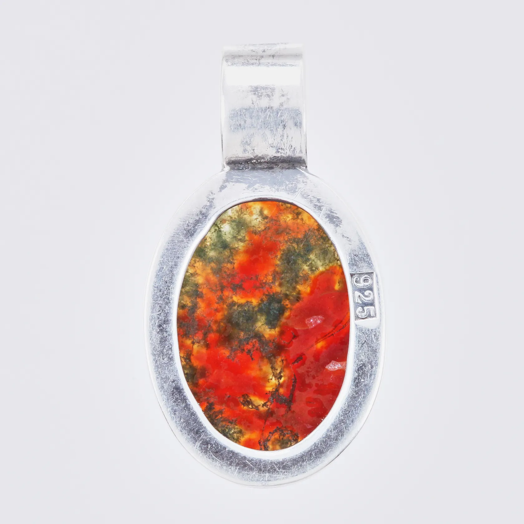 Hänge med mossagat, längd ca26mm, bredd ca 14mm, 925/1000 silver Vikt: 3,1 g.