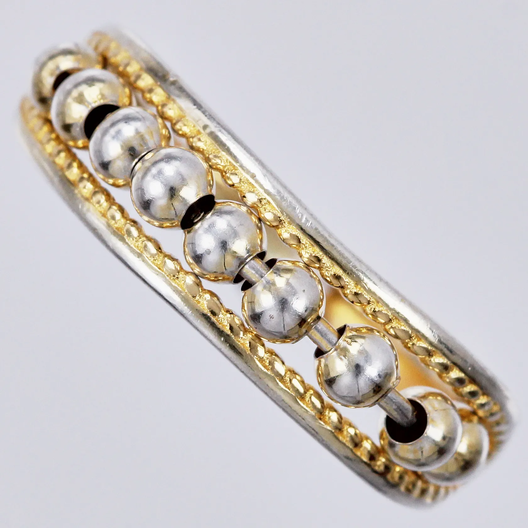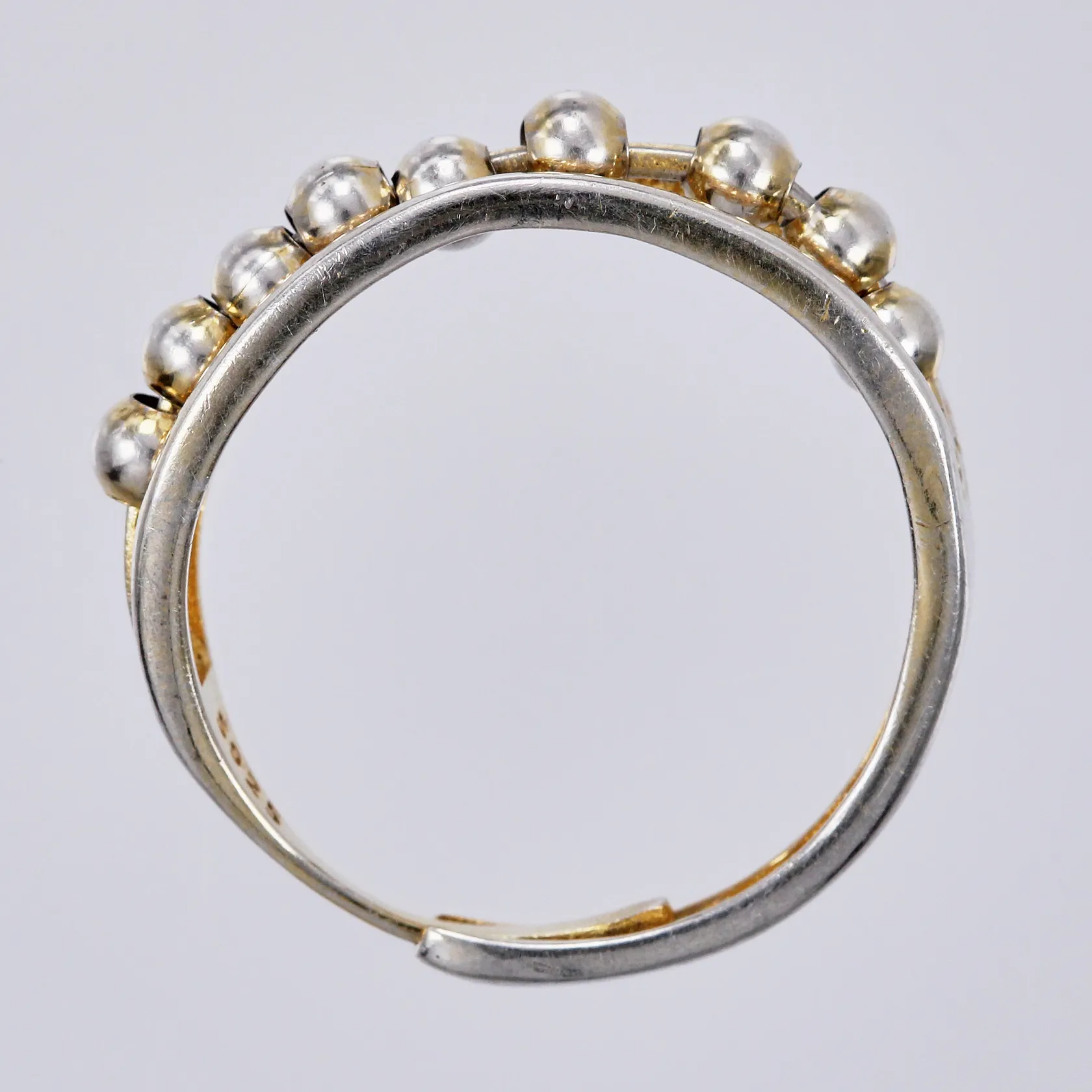 Ring med förgyllda delar i silver, rörliga kulor samt reglerbar skena, stl ca 18½, bredd ca 1-6mm, 925/1000 silver Vikt: 2,6 g.