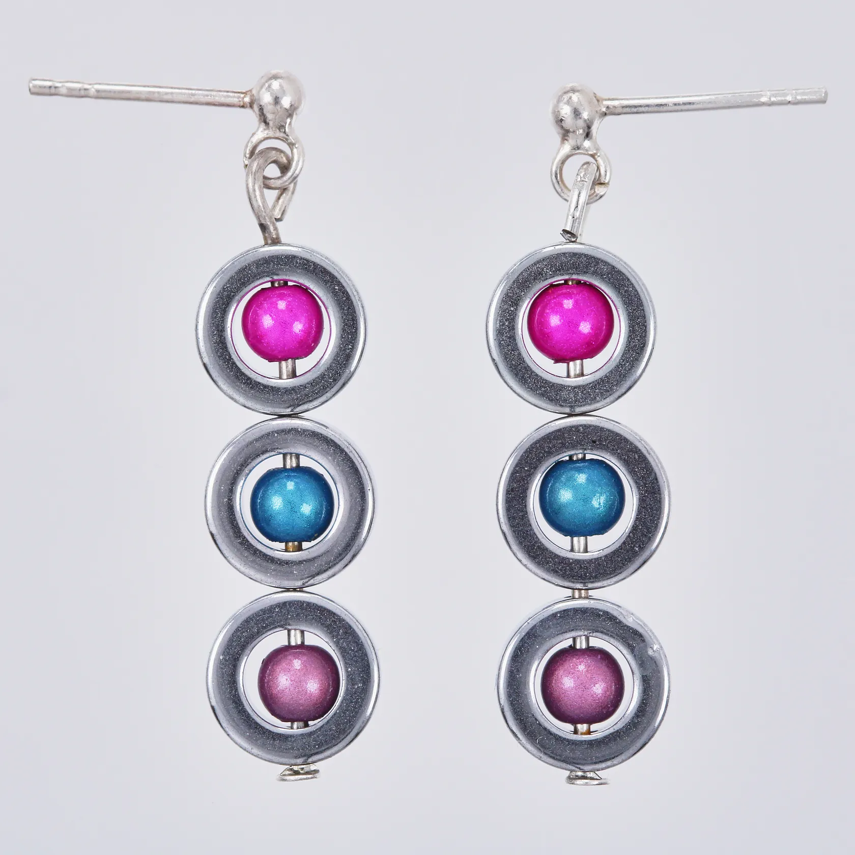 Ett par örhängen med glasstenar längd ca 3,3cm bredd ca 8mm stift i silver men resterande i stål Vikt: 4,1 g.