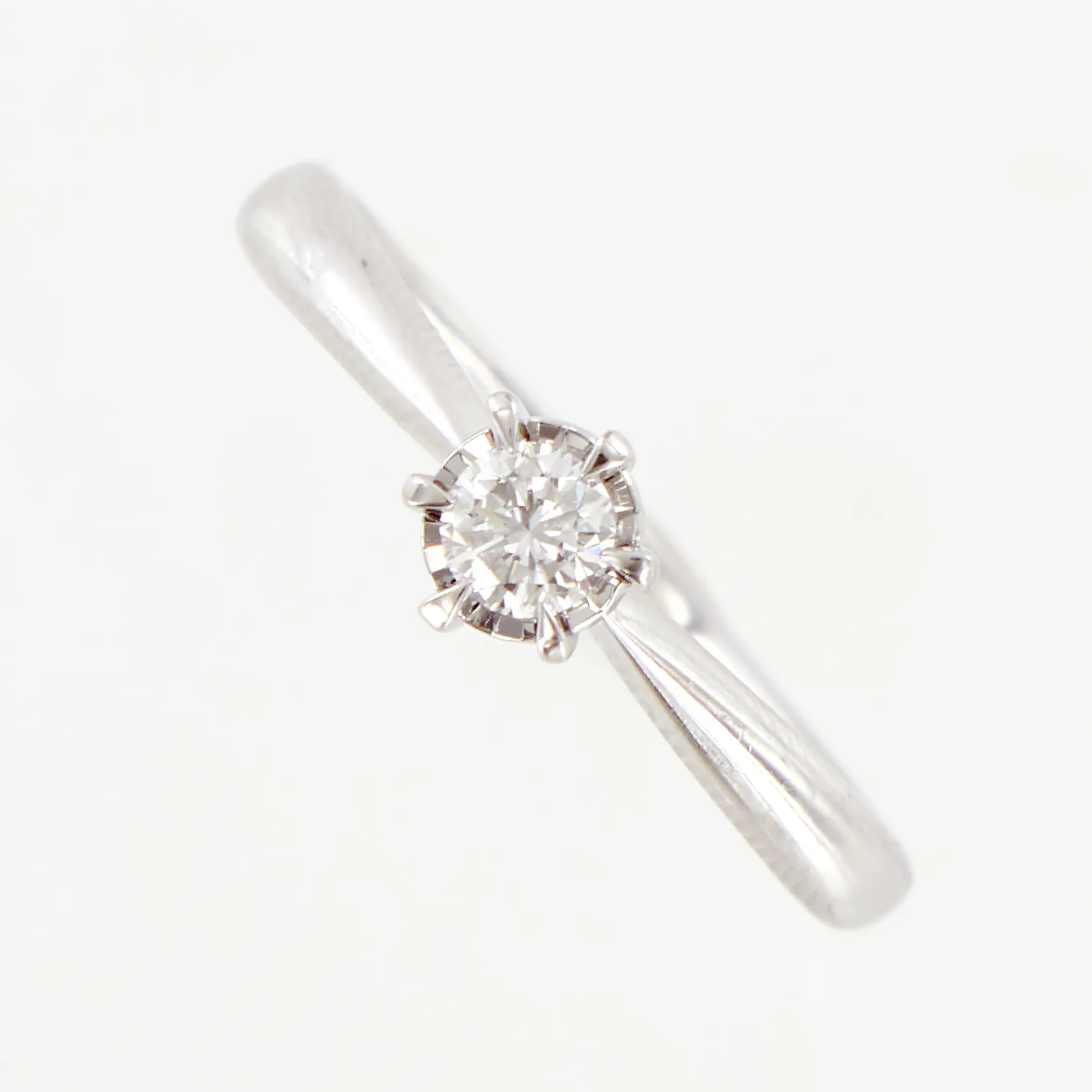 Ring med diamant ca 0,17ct, stl 18, bredd: 3-6mm, etui, vitguld, GHA, 18K Vikt: 3,4 g.
