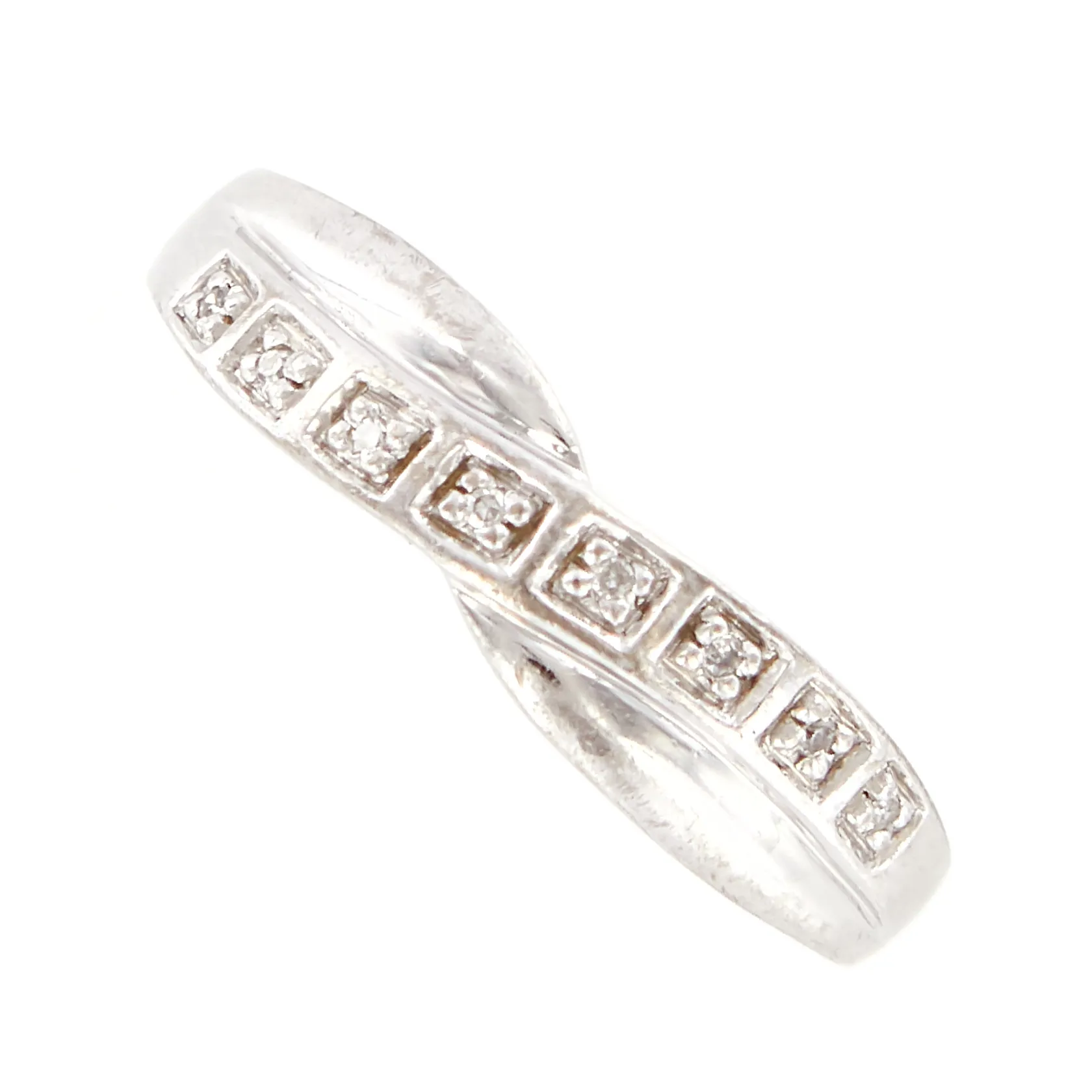 Ring med diamanter ca 8x0,005, stl 17¼, bredd: 1-5mm, GHA, något skev skena, vitguld, 18K Vikt: 3 g.