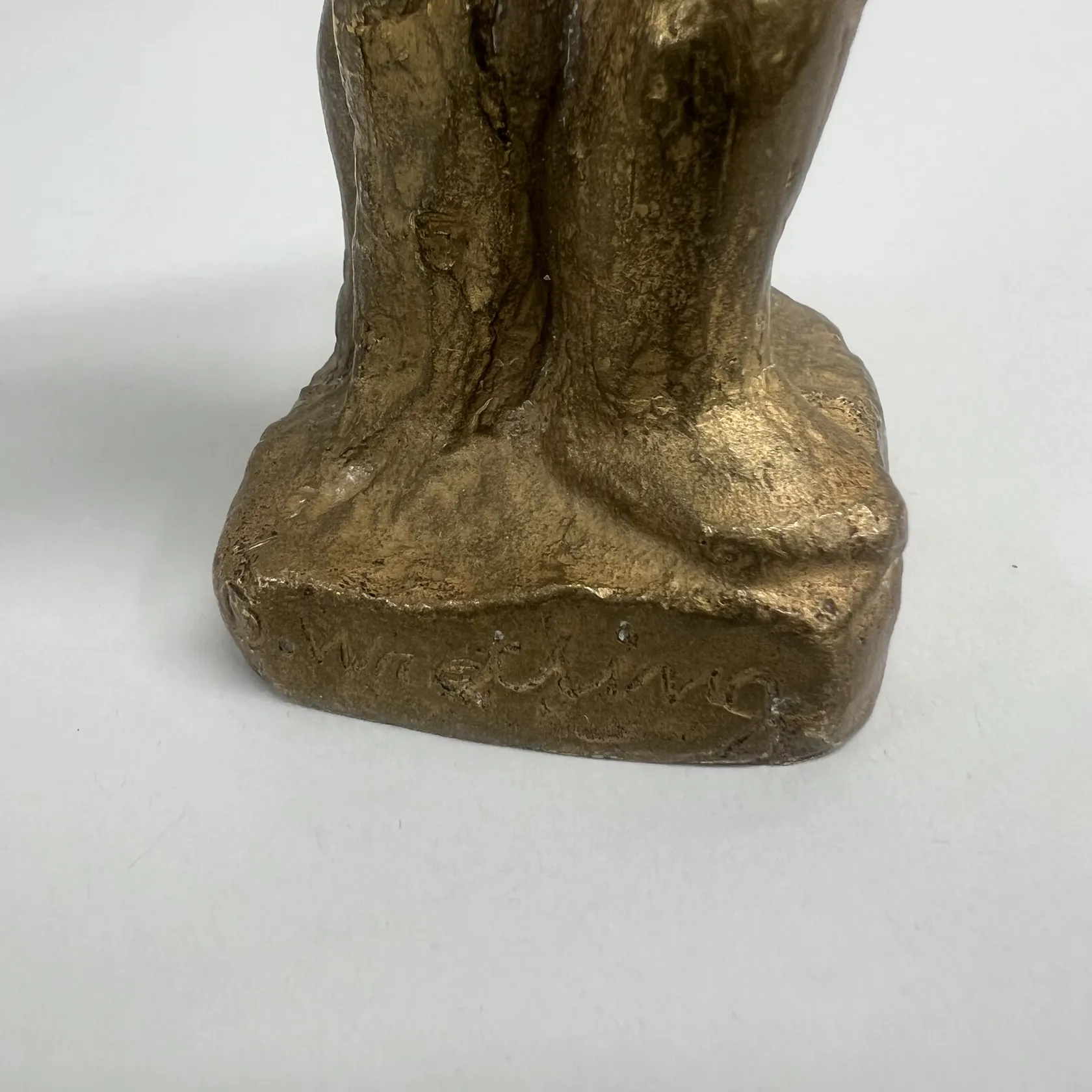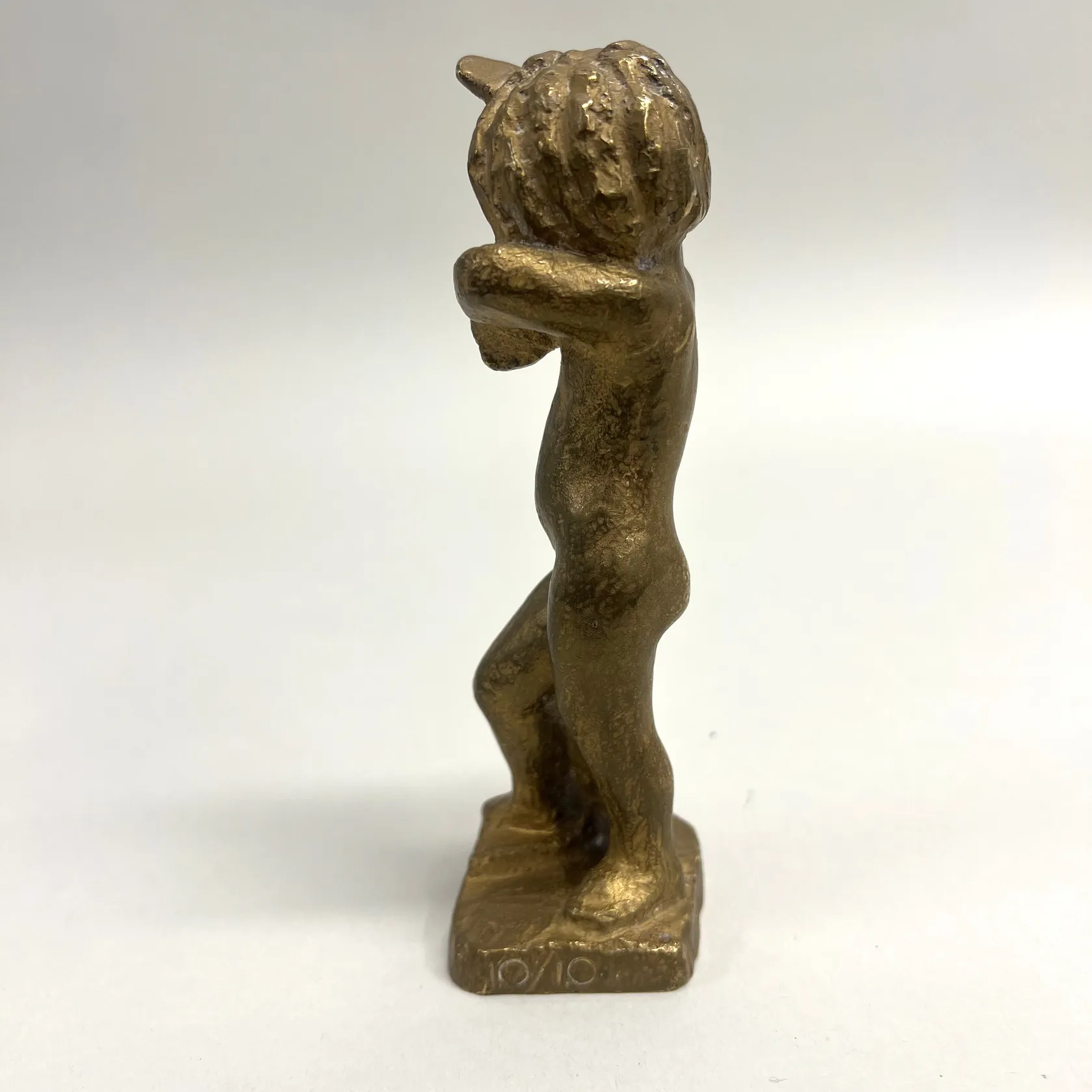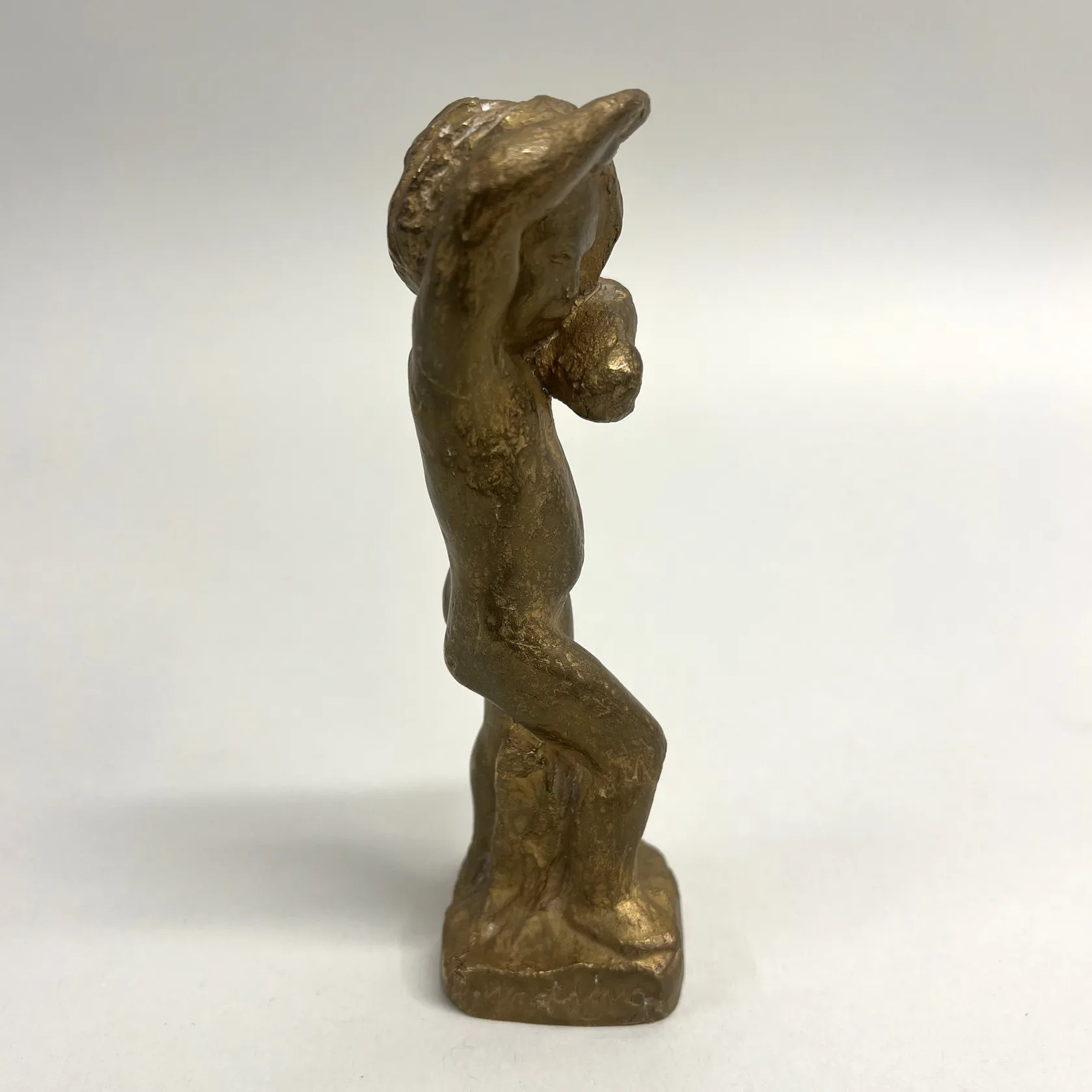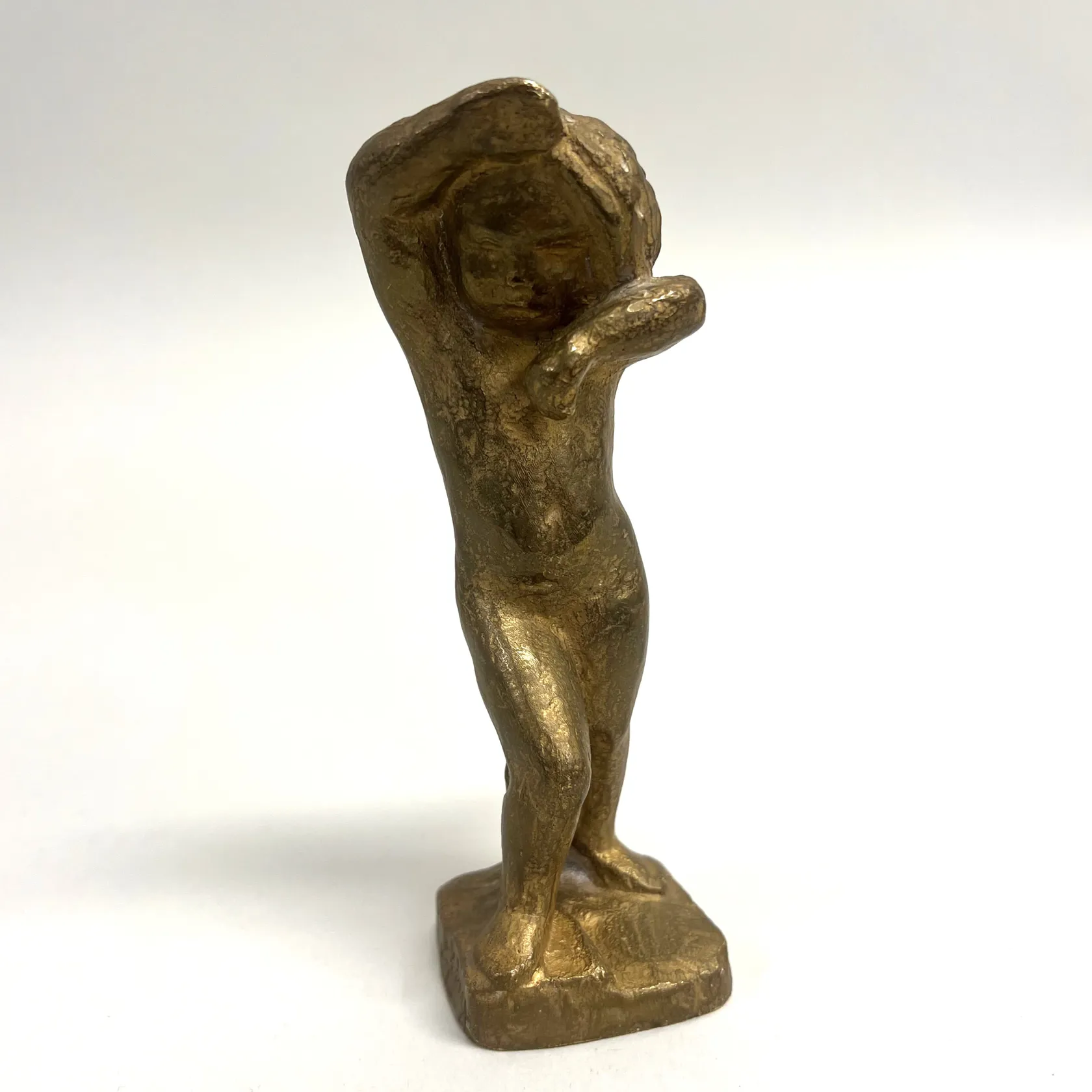 Skulptur signerad David Wretling (1901-1986), flicka, höjd 15cm, nr 10/10, gjutarstämpel J.H. Rosengren, Limhamn, förgylld brons Omfattas av BUS-avgift.
