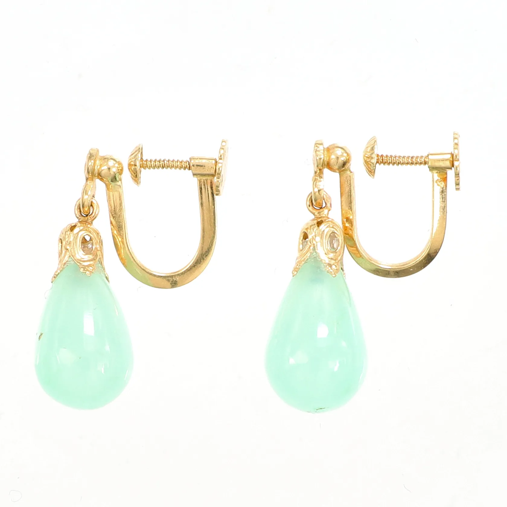 Ett par örhängen med stenar, möjligen kalcit, längd 23,5mm, bredd 8,5mm, märken i stenarna, 18K bruttovikt: 4,4g Vikt: 4,4 g.