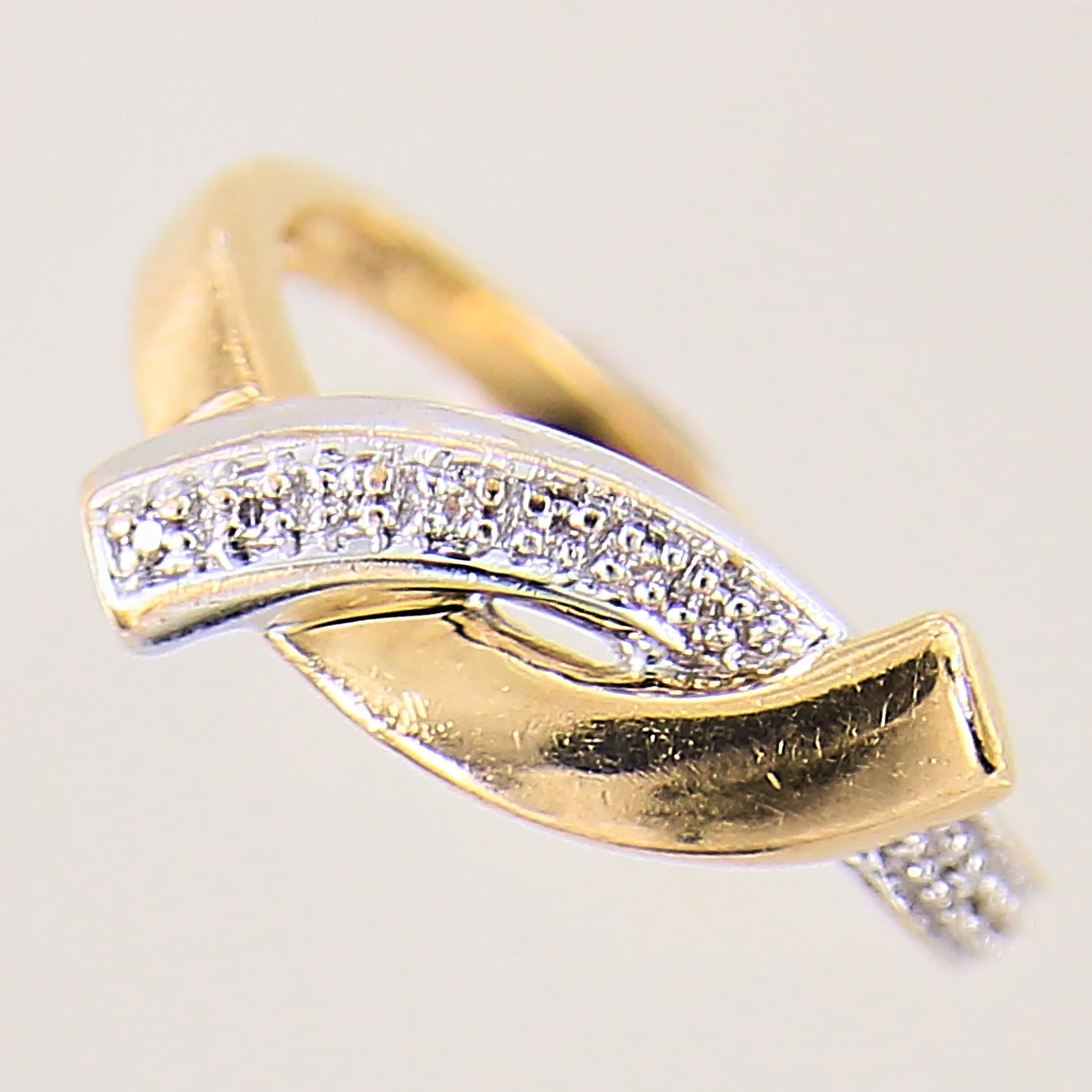 Ring med diamanter 12 x ca 0,005ct, stl 17, bredd 2-6mm, vitguldsdetaljer, GHA, 18K Vikt: 3,7 g.