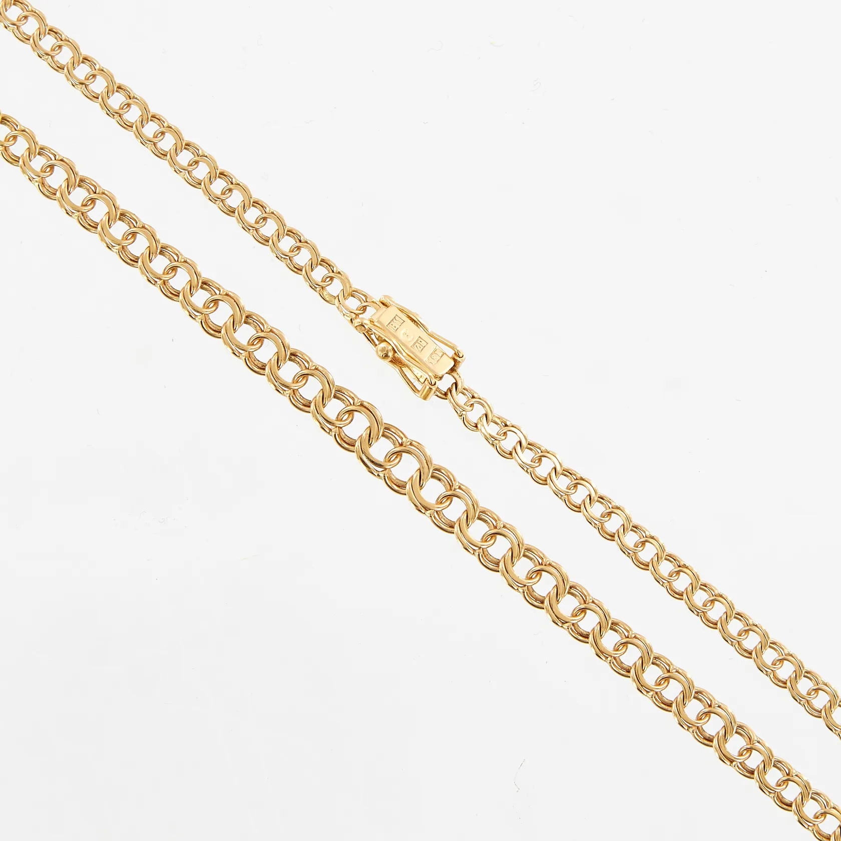 Kedja Bismarck doserad, 44cm, bredd: 3-5mm, kistlås, 18K Vikt: 10,8 g.
