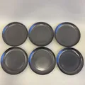 Sex assietter/förrättstallrikar, Ø 19cm, möjligen serien Mangania formgiven av Lillemor Mannerheim, ej märkta/signerade, bruksslitage, tillverkningsdefekter Skickas med postpaket.