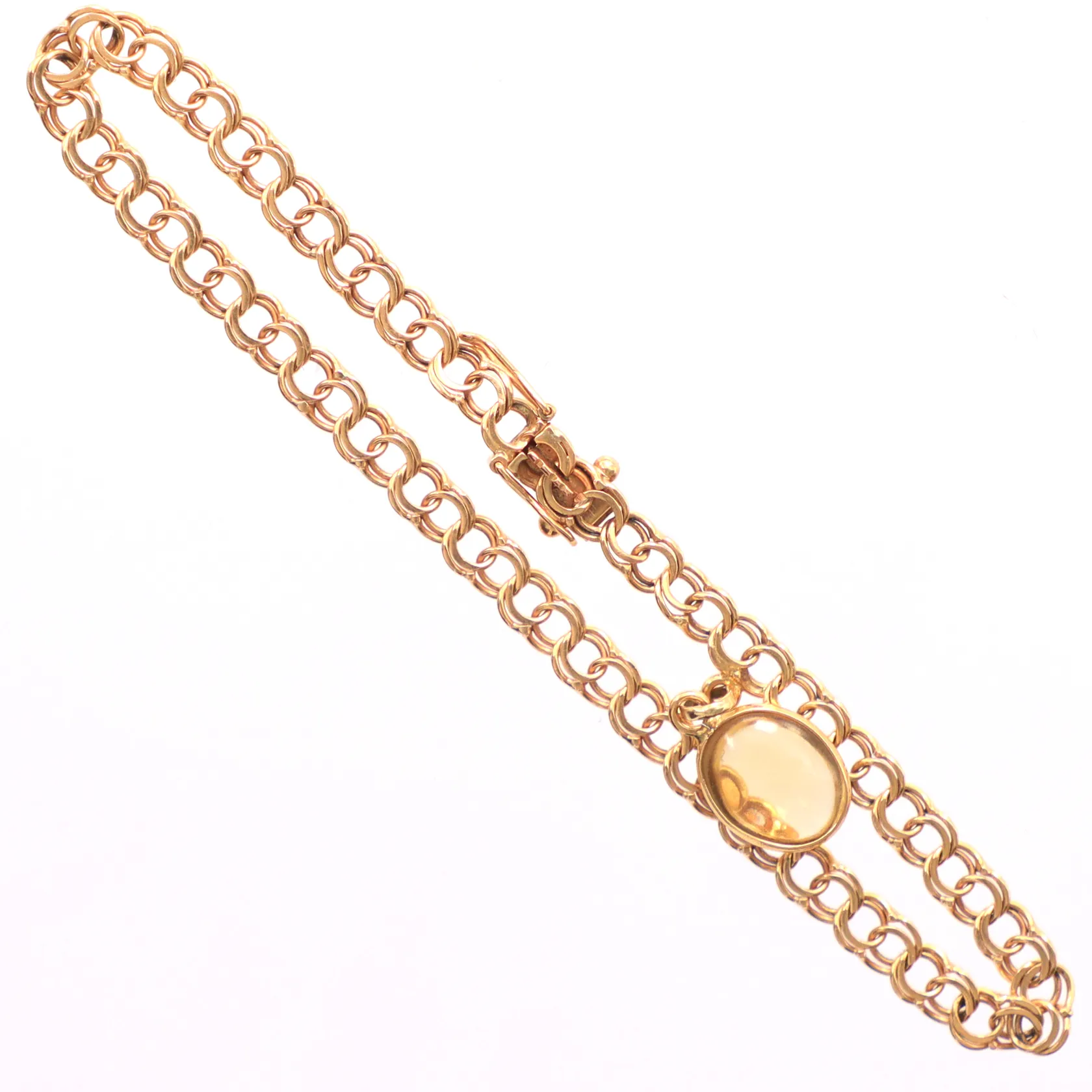 Armband Bismarck längd 18,5cm bredd 4,2mm, berlock med sten, längd 13,6mm, bredd 8,6mm, breddM.K:S Guldsmedsatelier Ab, år 1962, kistlås, 18K Vikt: 5,3 g.