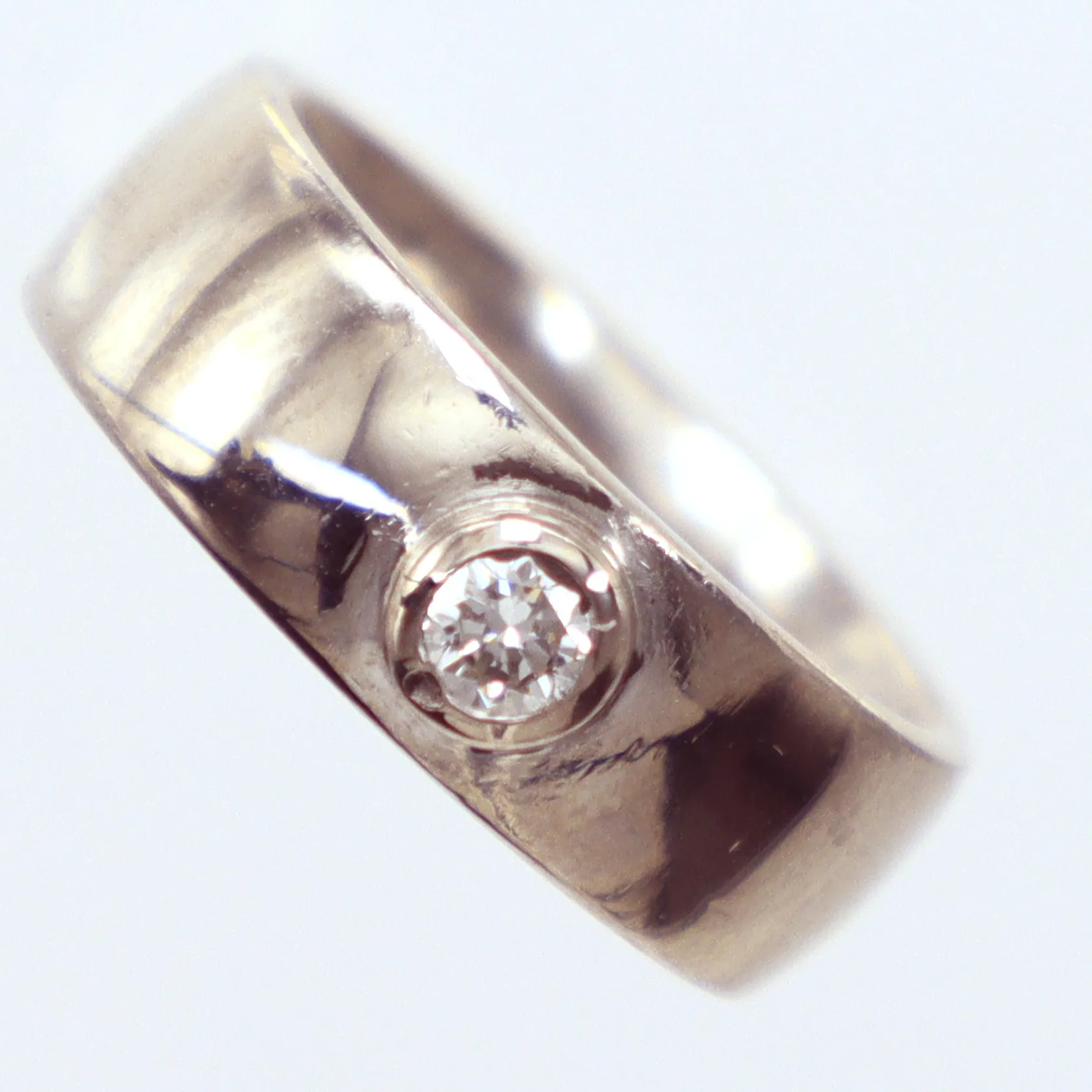 Ring diamant, 0,10ct vitguld, Ø17¼, bredd 7mm, 18k Vikt: 12,3 g.