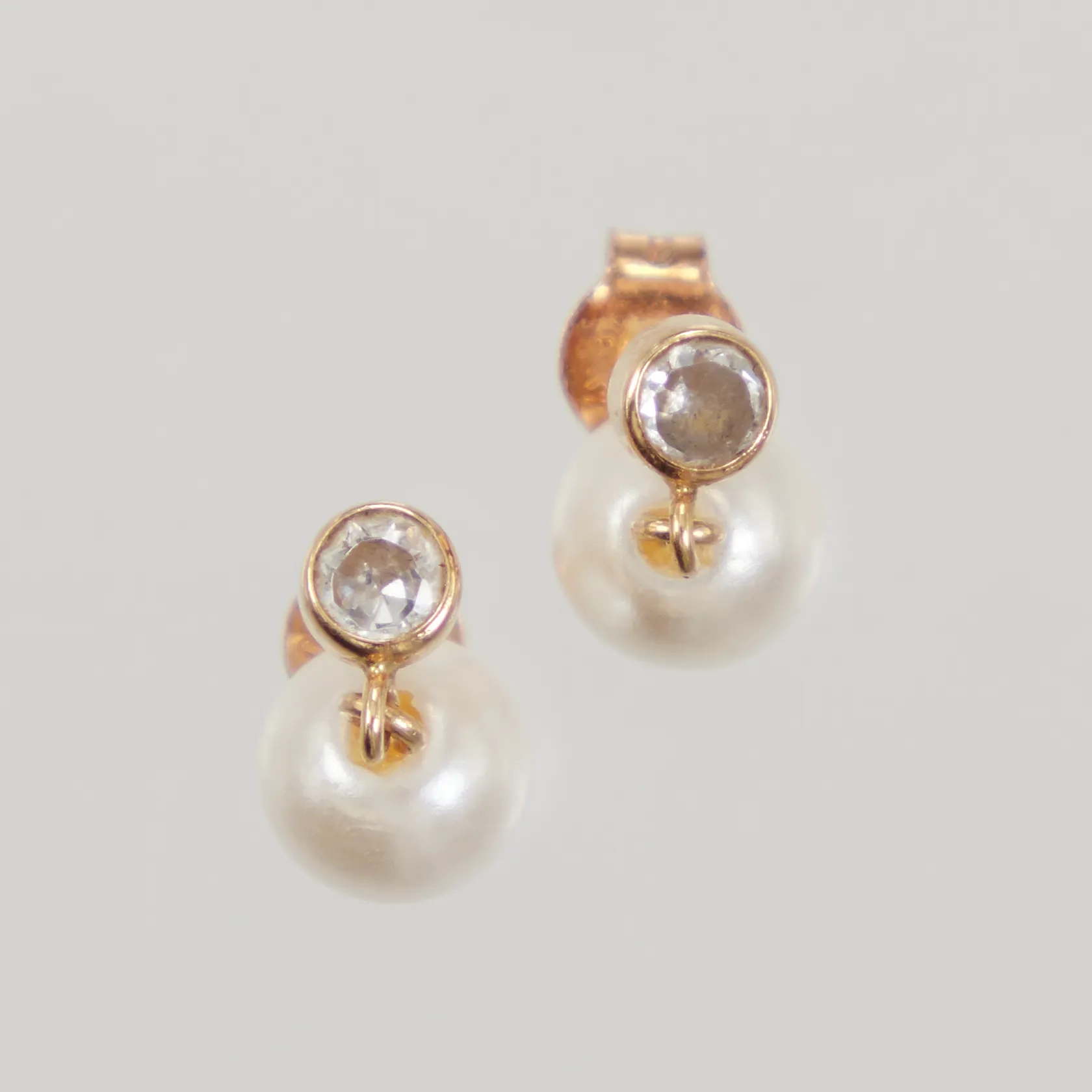 Ett par örhängen, pärlimitation samt vita stenar, längd ca 10mm, 18K Vikt: 0,8 g.