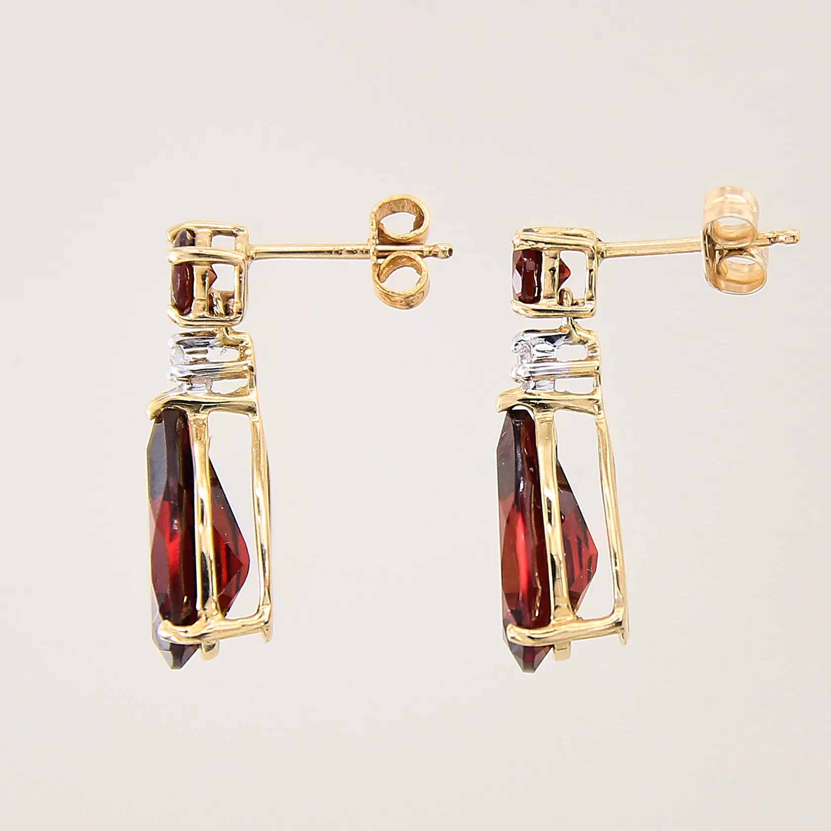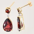 Ett par örhängen med diamanter 2 x ca 0,01ct samt röda stenar, 19x7,8mm, omaka snurrebussar, 14K Vikt: 3,3 g.