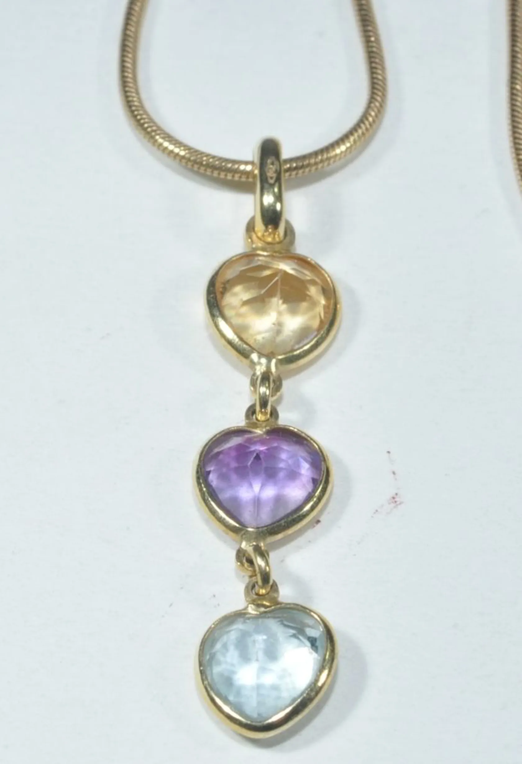 Halsband med hänge med färgade stenar Längd 43 cm/4 cm ,18K Vikt: 7,6 g.