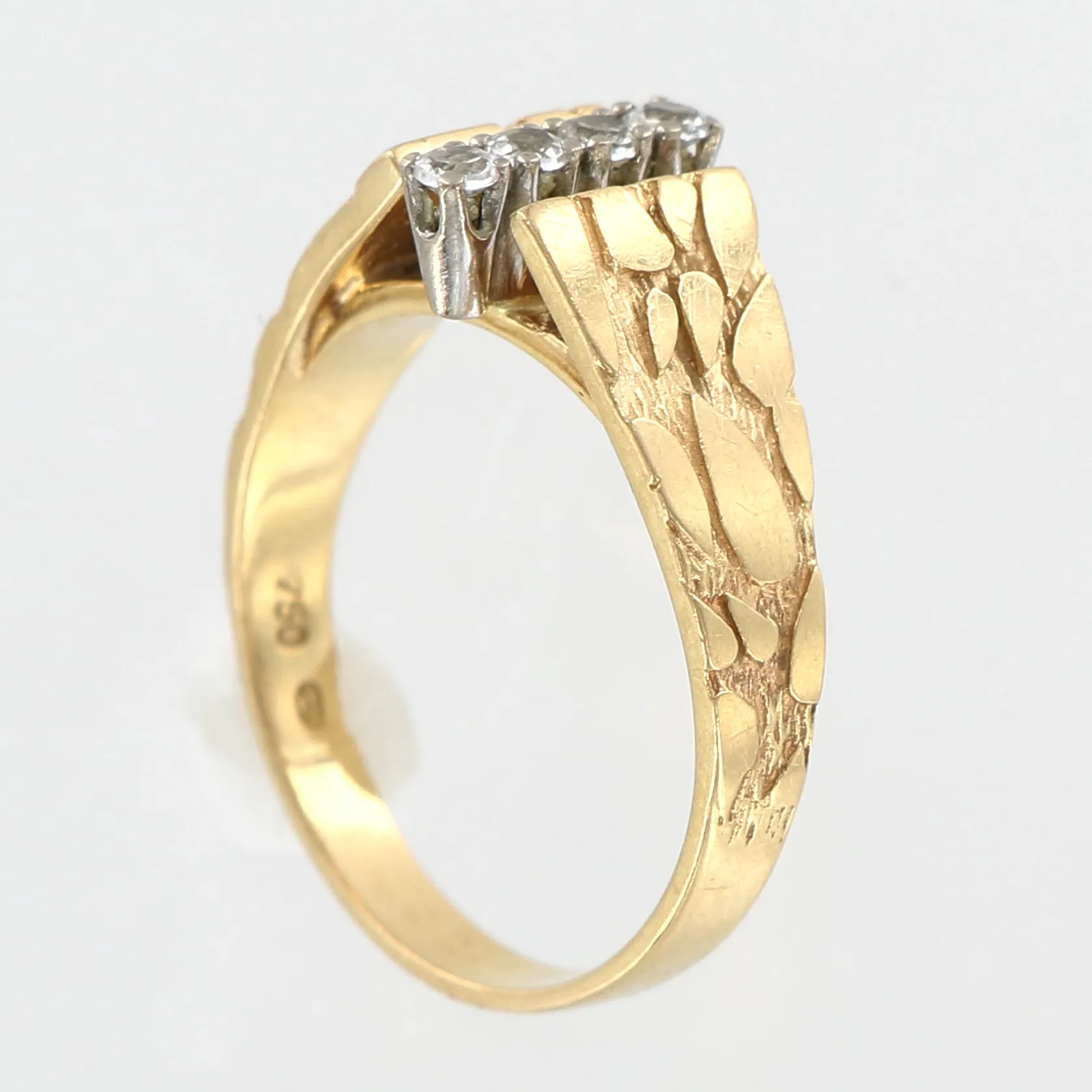 Ring med vita stenar, stl 17½, bredd 2-10mm, infattning i vitguld, 18K Vikt: 5,1 g.