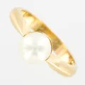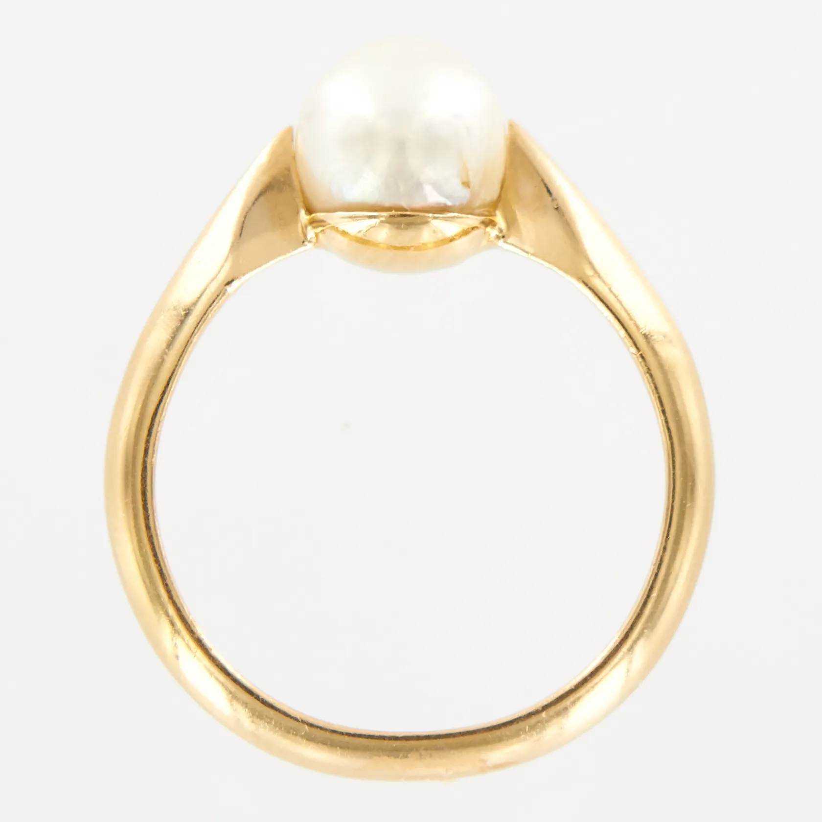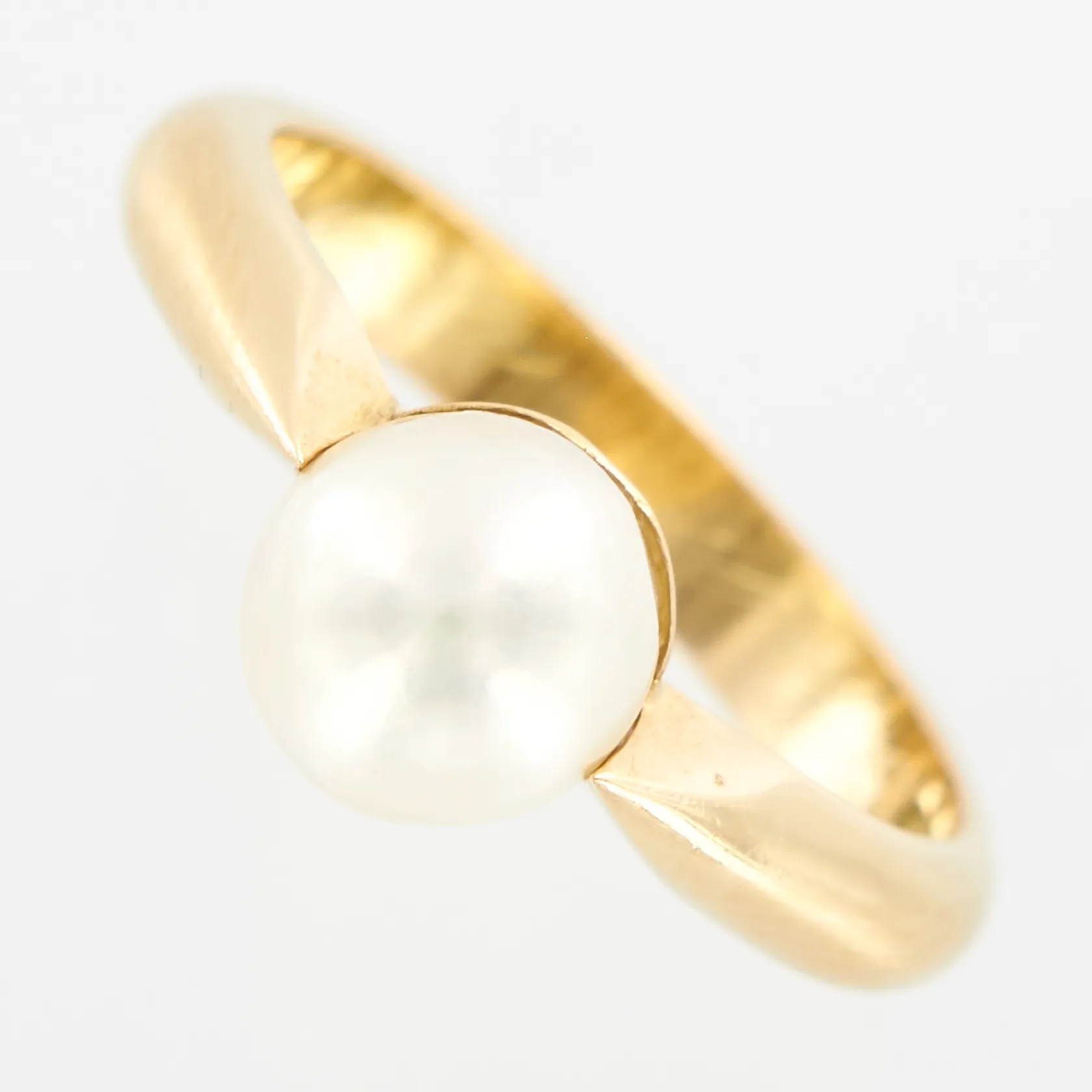 Ring med odlad pärla, stl 17½, pärla Ø7,5mm, år 1934, svag gravyr, 18K Vikt: 5,4 g.