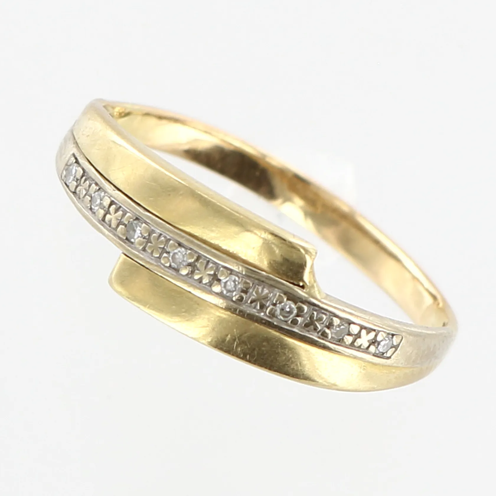 Ring, diamanter 8 x ca 0,0075ct, 8/8-slipade, stl 20, bredd 2-7mm, skev, 18K Vikt: 2,4 g.