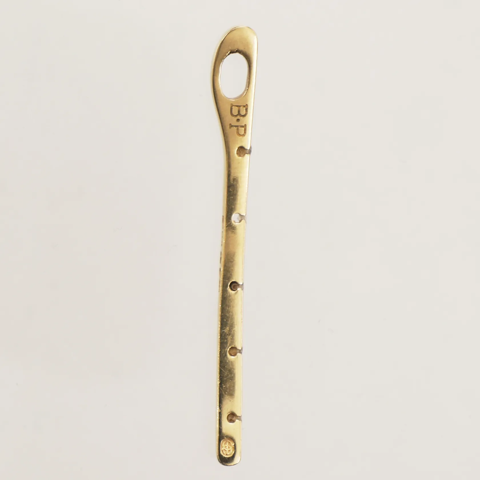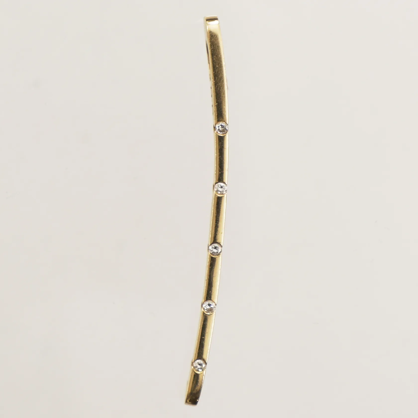 Hänge med diamanter, 5x ca 0,01ct, längd 50mm, bredd 2mm, inskription BP, Heribert Engelbert AB Stockholm, 18K Vikt: 3,7 g.