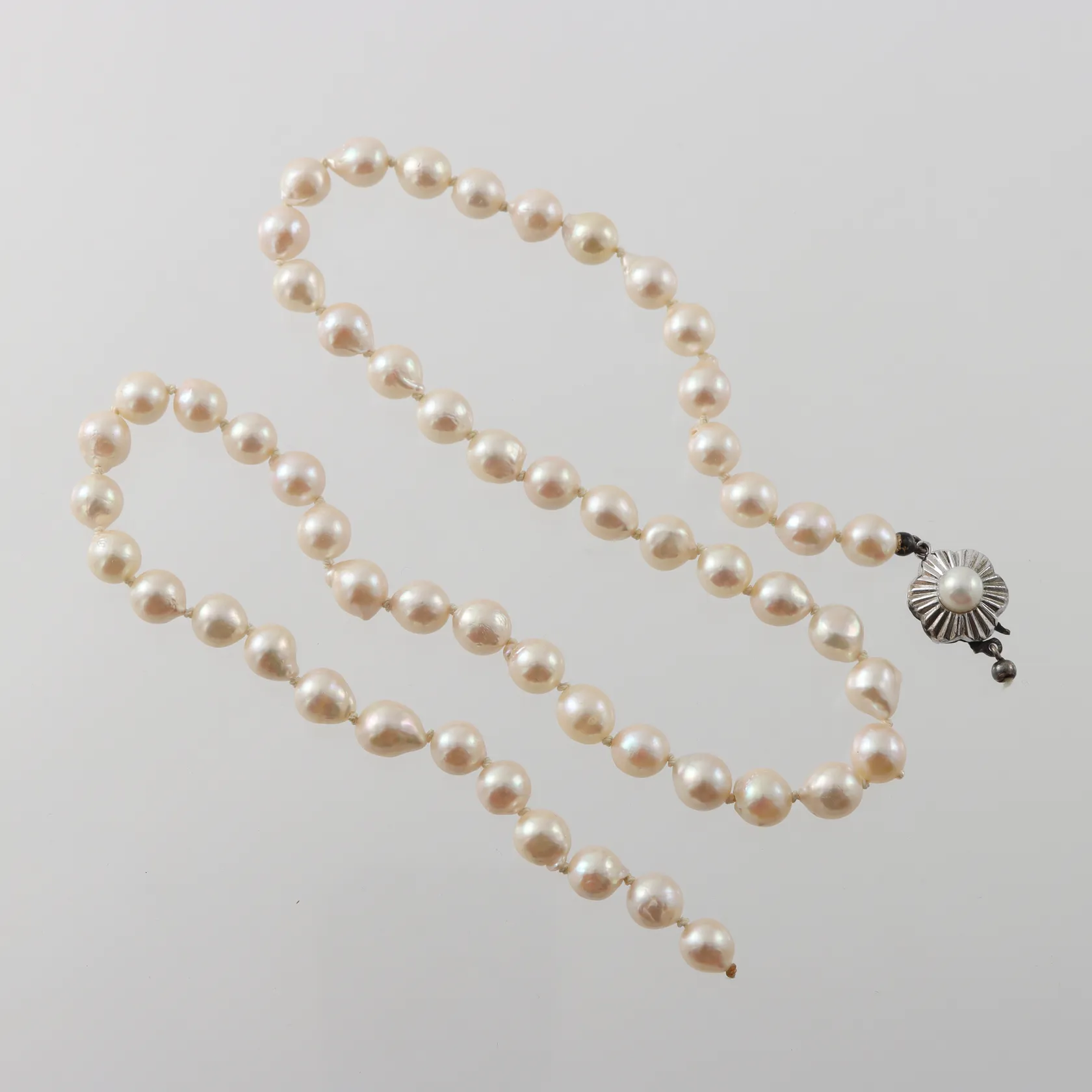 Collier defekt med odlade sötvattenspärlor Ø ca 6,8mm, längd ca 46, lås silver 835