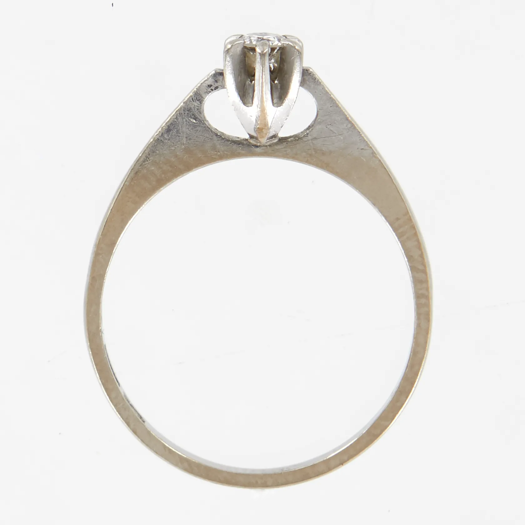 Ring med diamant 0,10ct, stl 17½, bredd ca 4mm, 2mm, behov av omrodiering, 18K Vikt: 2,7 g.