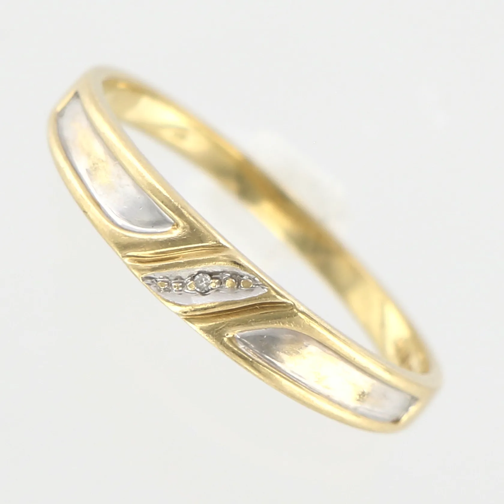 Ring med diamant ca 0,007 ct, stl 18¾, bredd 4mm, gul/vitguld, 18K Vikt: 2,2 g.