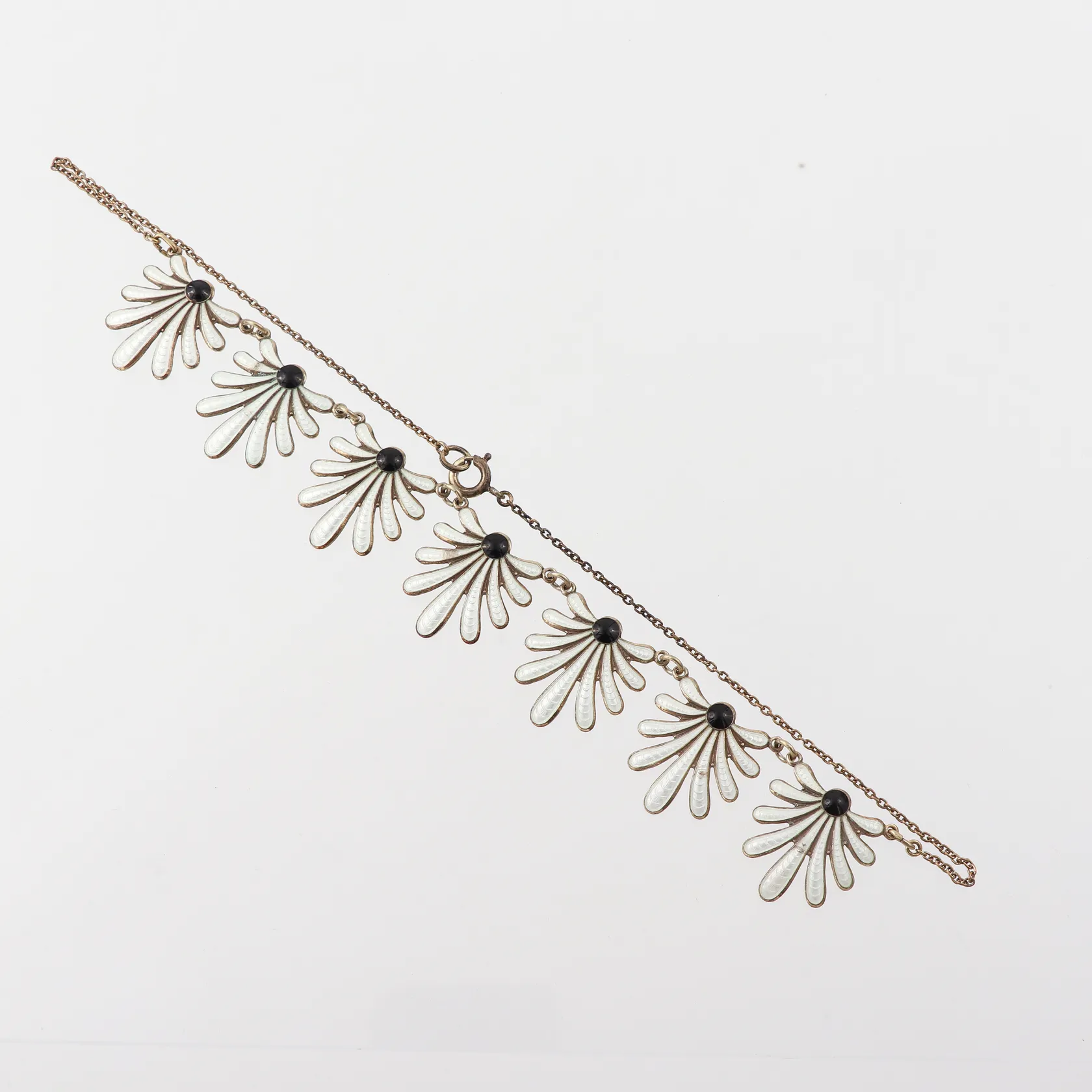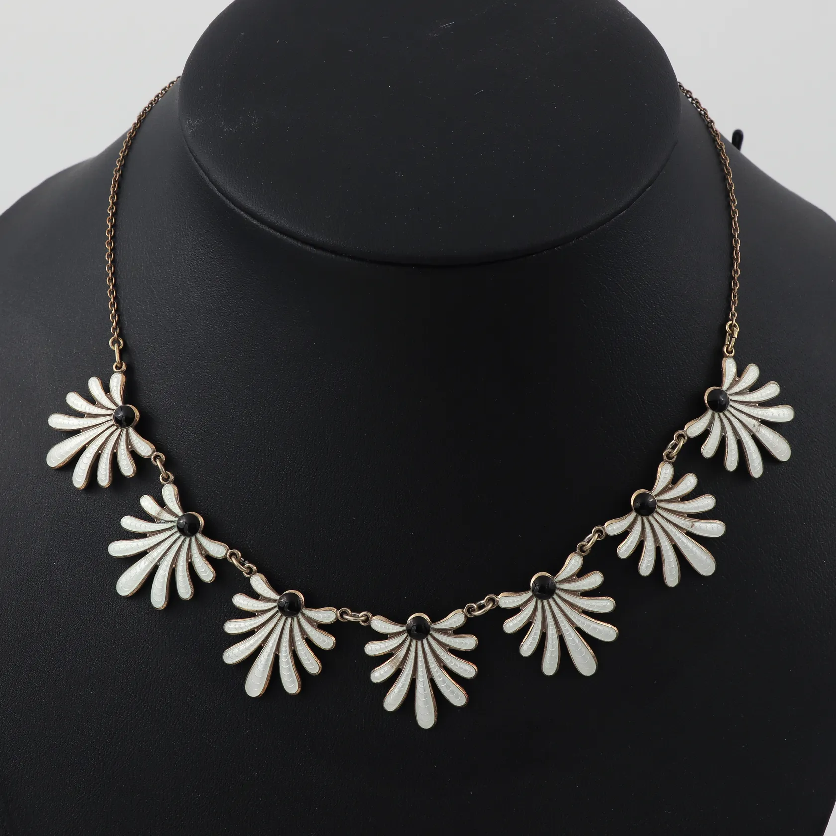 Halssmycke silver med emalj stpl ANA (Arne Nordlie) 925s , längd ca 38 cm, finns små skador på emaljen, silver 925/1000 Vikt: 17,2 g.