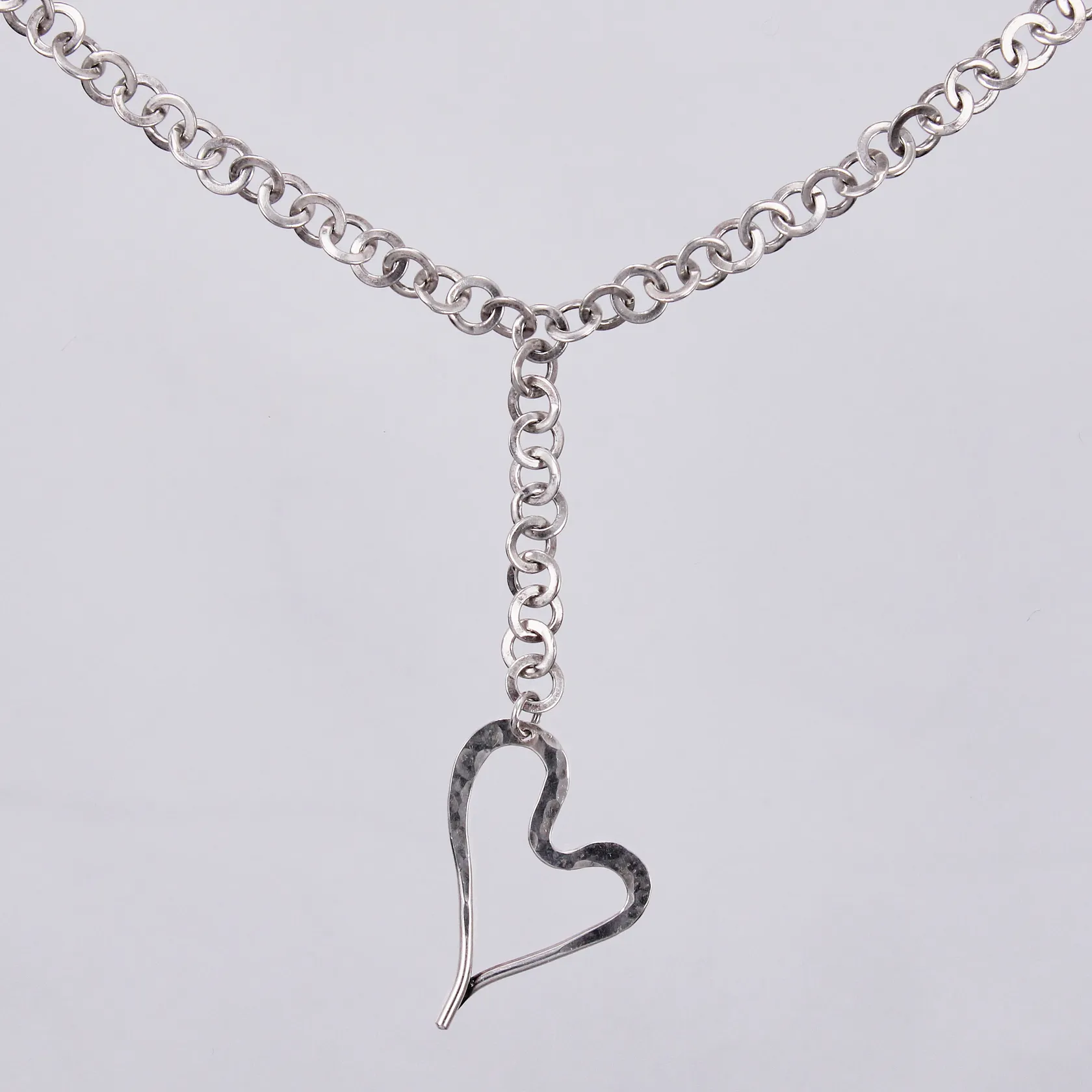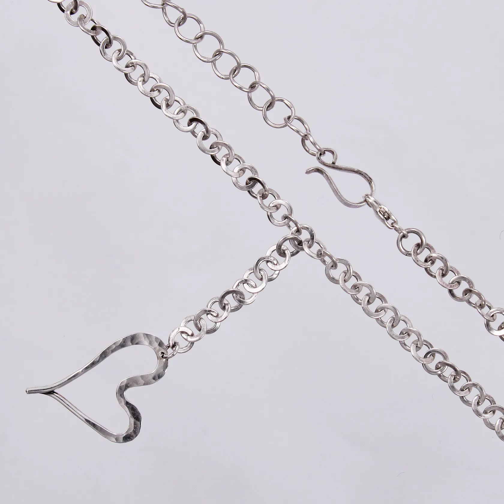 Collier med hänge hjärta längd kedja: ca 52-59cm bredd: ca 5mm längd hänge: ca 7cm bredd: ca 5-20mm 925/1000 silver Vikt: 19,6 g.