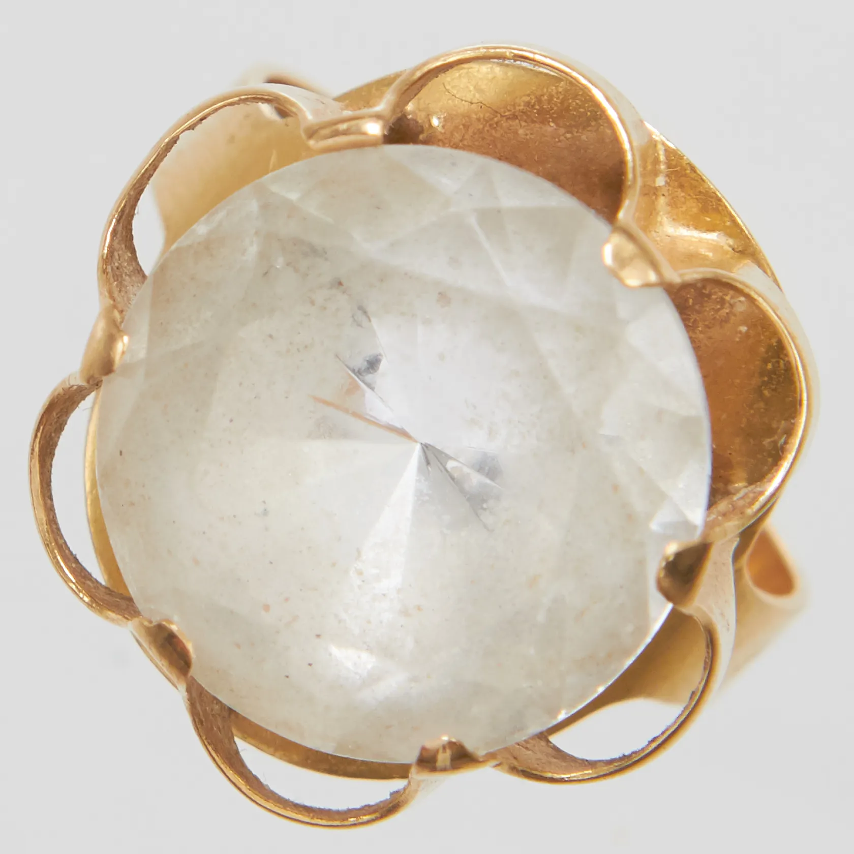 Ring med vit syntetisk spinell, Ø17+, bredd: 3,4-17,1mm, 18K Vikt: 5,3 g.