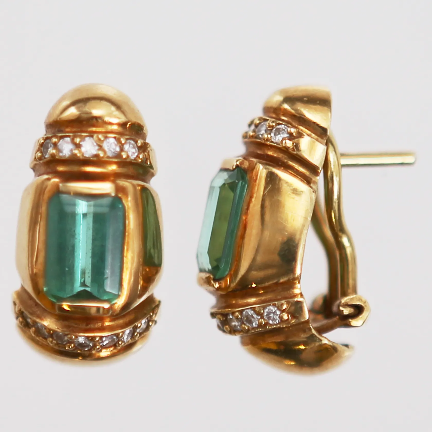 Ett par örhängen med turmaliner 2 x ca 0,80ct och diamanter 24 x ca 0,01ct, H.Stern, Brasilien, ca 18x10mm, 18K guld. Vikt: 7,6 g.