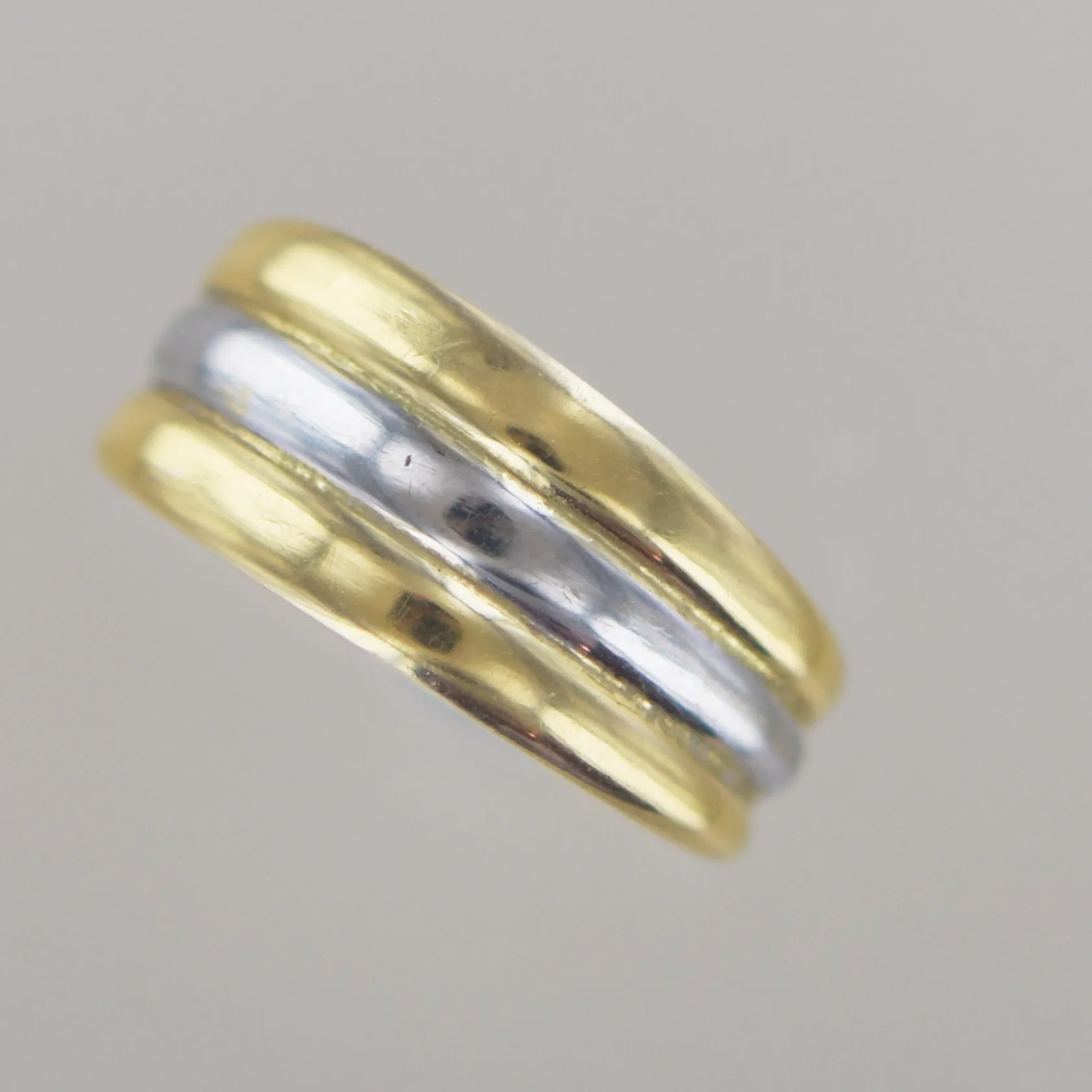 Ring 2 färger liten buckla bak, Ø 17 mm bredd 5-8 mm, vit guld ,18k Vikt: 1,9 g.
