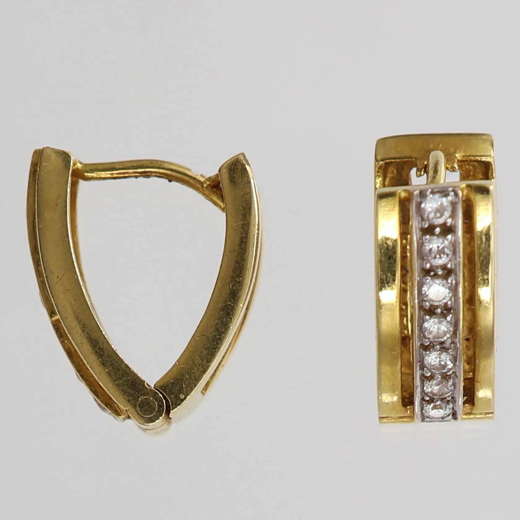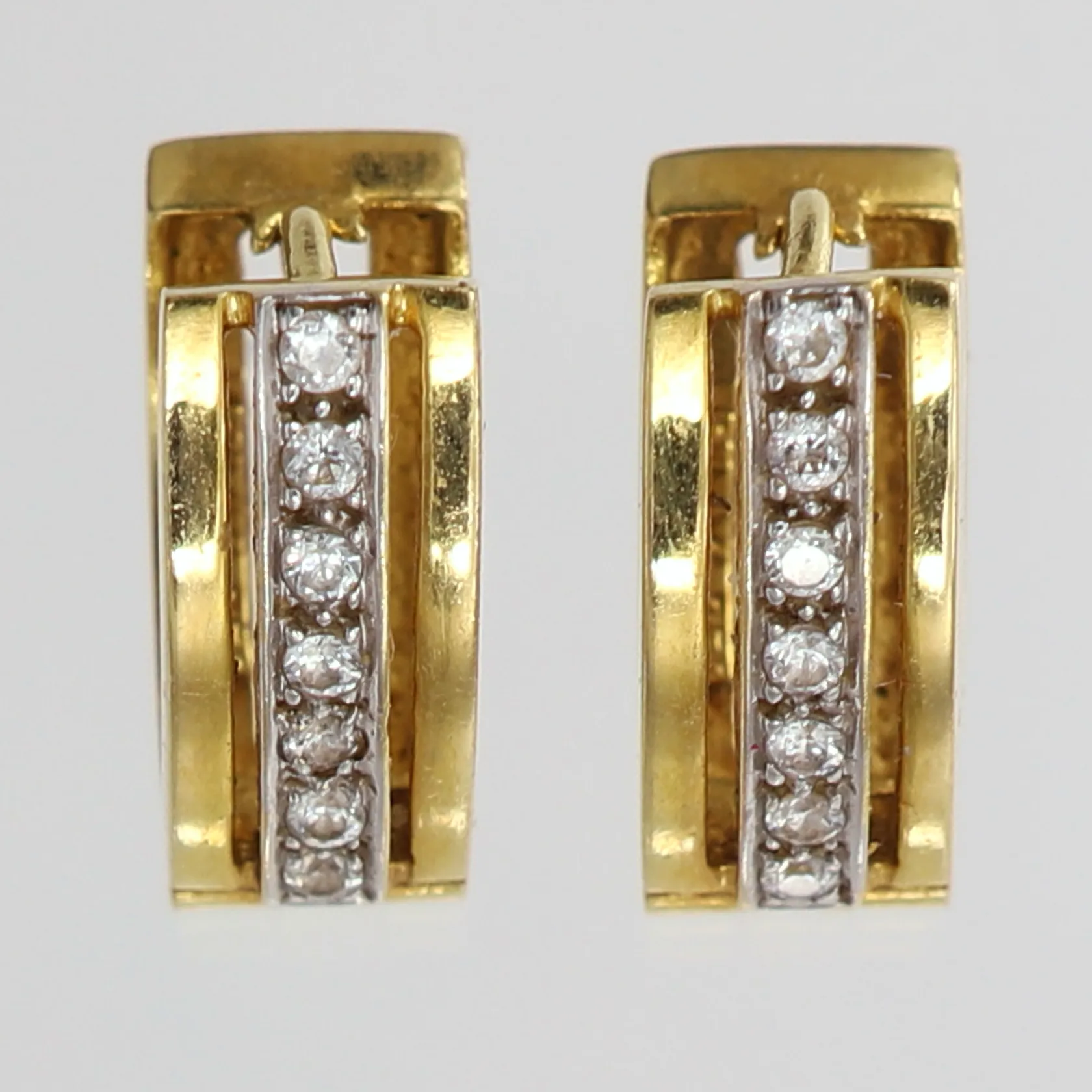 Ett par örhängen med vita stenar, ca 14x6mm, 18K. Vikt: 4,6 g.