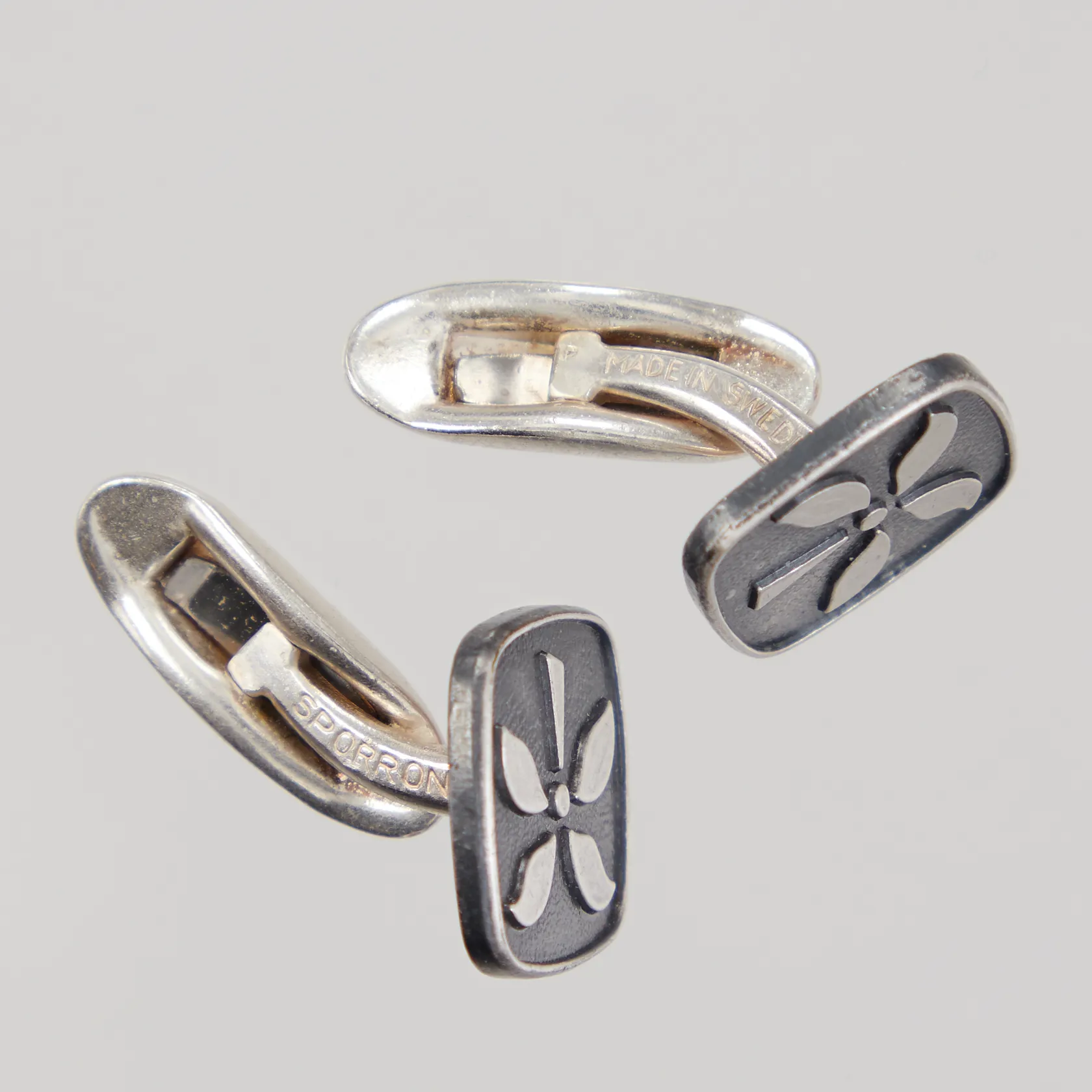 Ett par manschettknappar, Ø 15,6mm, SPORRONG, vitmetall