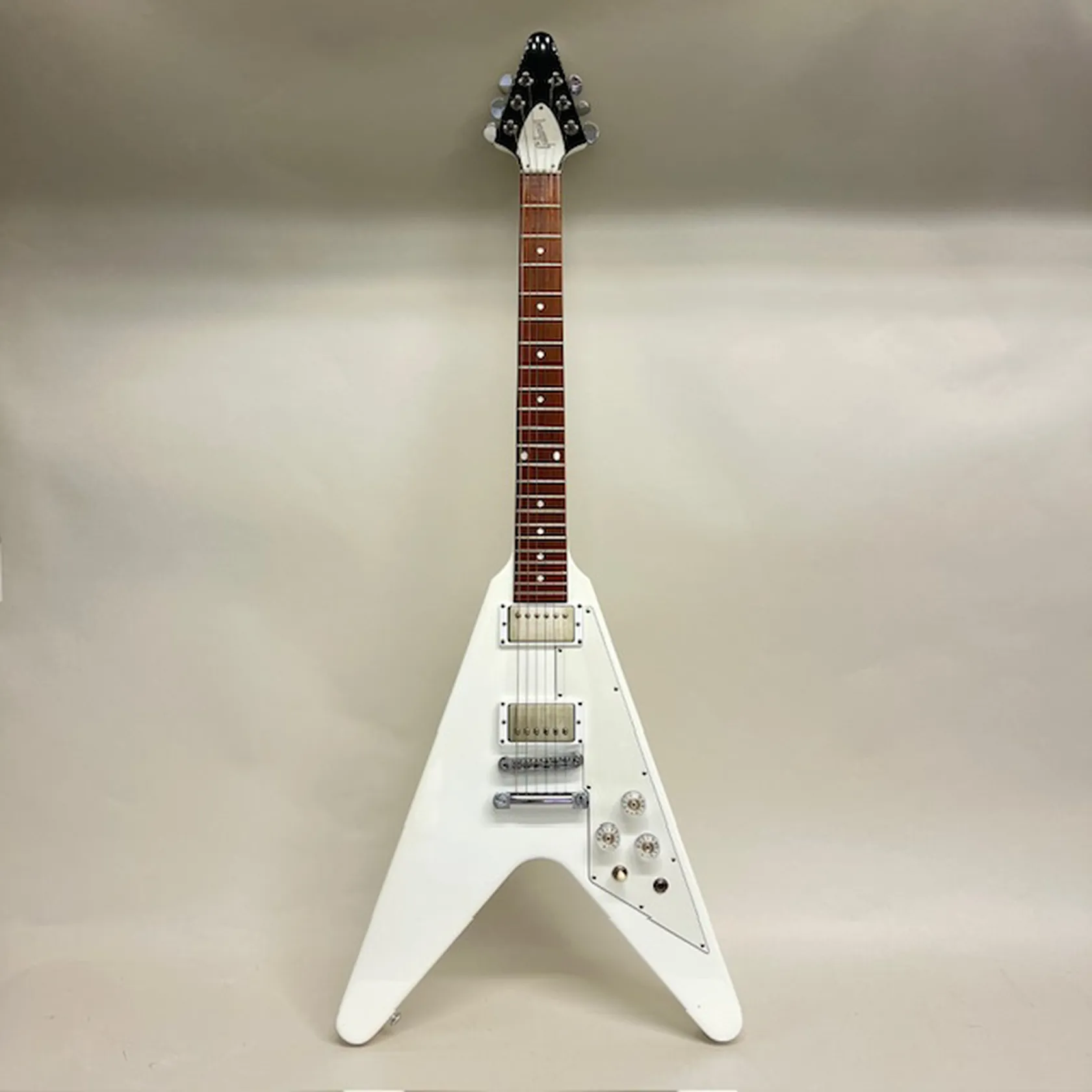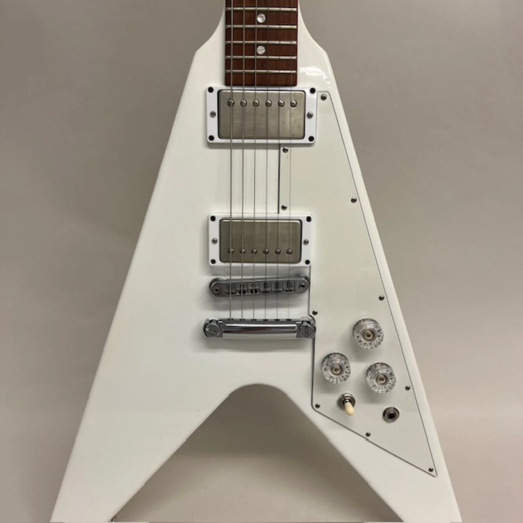 Elgitarr Flying V Tribute, Alpine white, USA 2017, svagt serienummer troligen 170056040, Dirty Fingers humbuckers, nagg nedre sida, bruksslitage, hårt originalfodral Skickas med Bussgods eller PostNord.