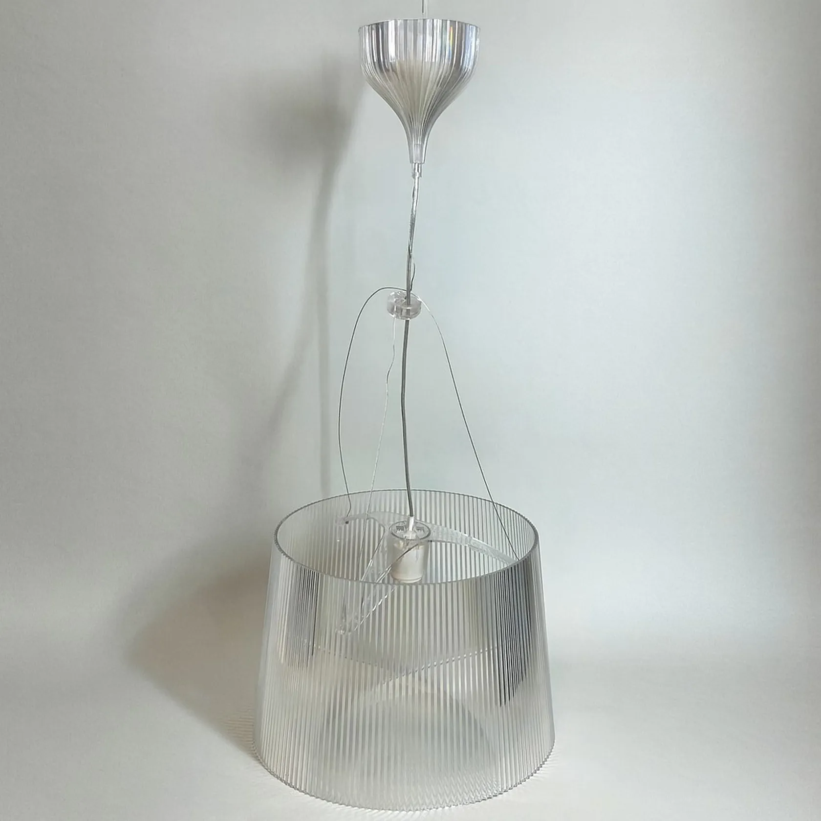 Lampa Kartell Gè Pendel, designer Ferruccio Laviani, hårdplast höjd 26cm, Ø31cm, klar transparent, sladd ca 95cm, ej funktionstestad Skickas med postpaket.