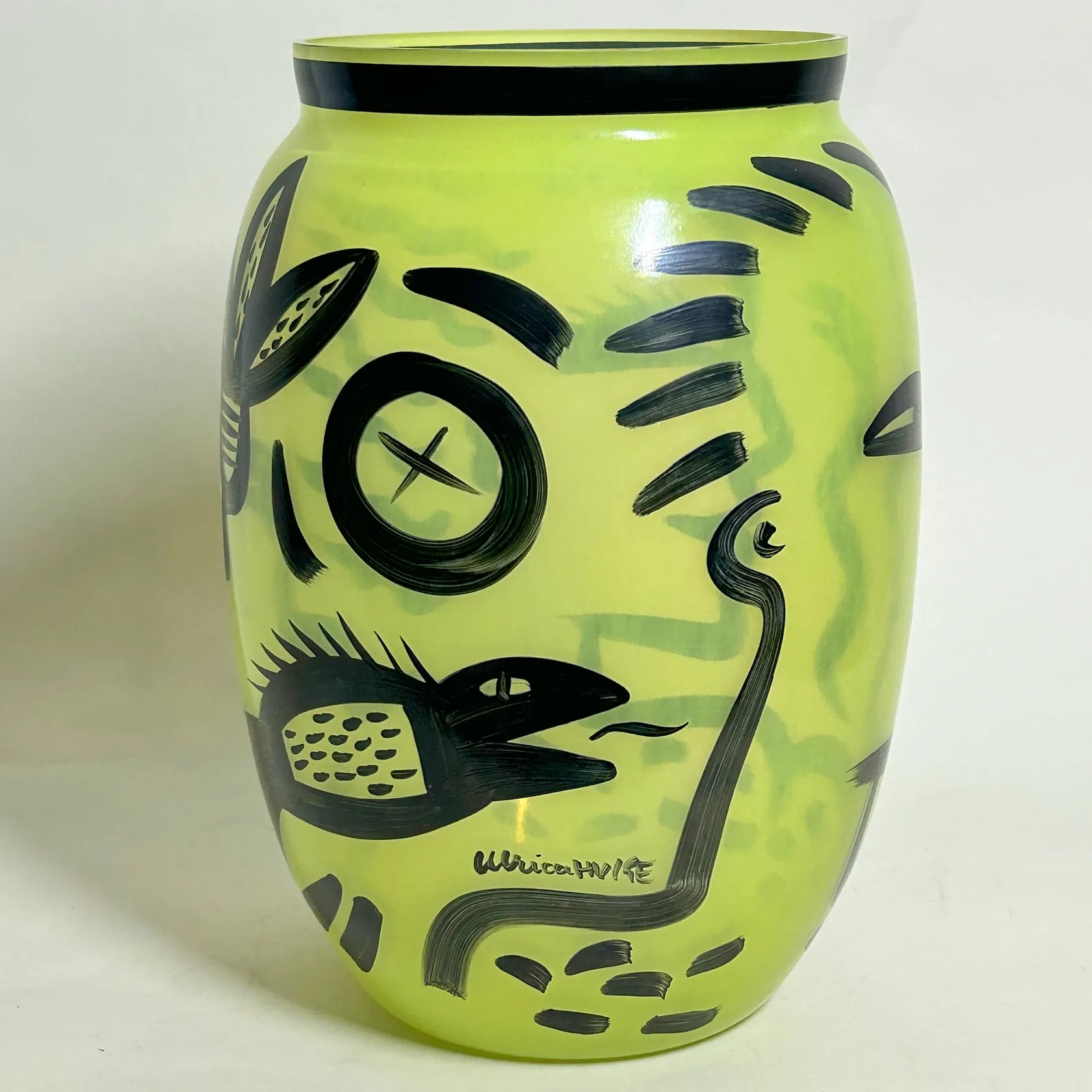 Caramba Lime av Ulrica Hydman Vallien Kosta Boda, vasa/kruka höjd 34cm Ø ca 18cm, signerad nr 7040542, etikettmärkt, handmålad Skickas med postpaket.