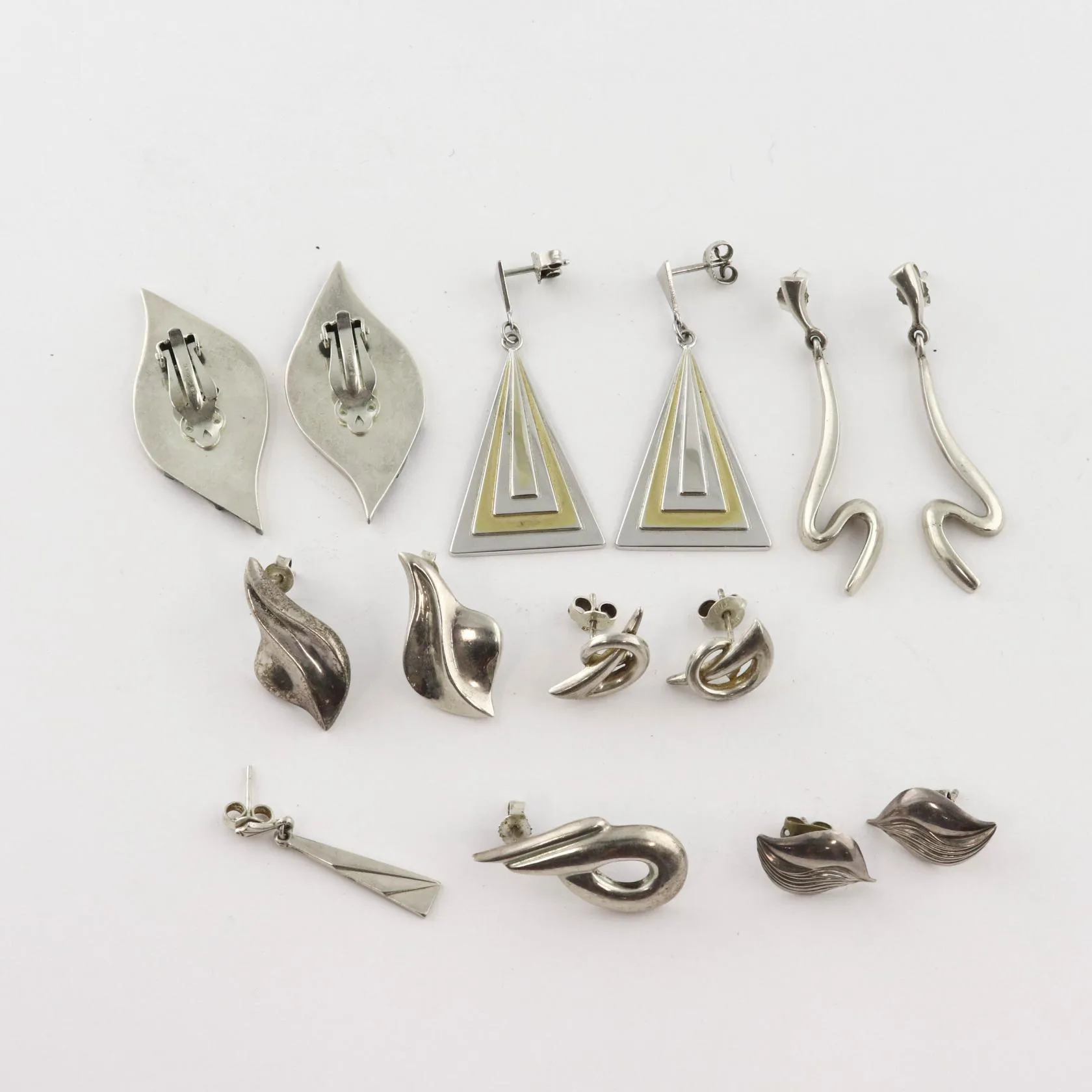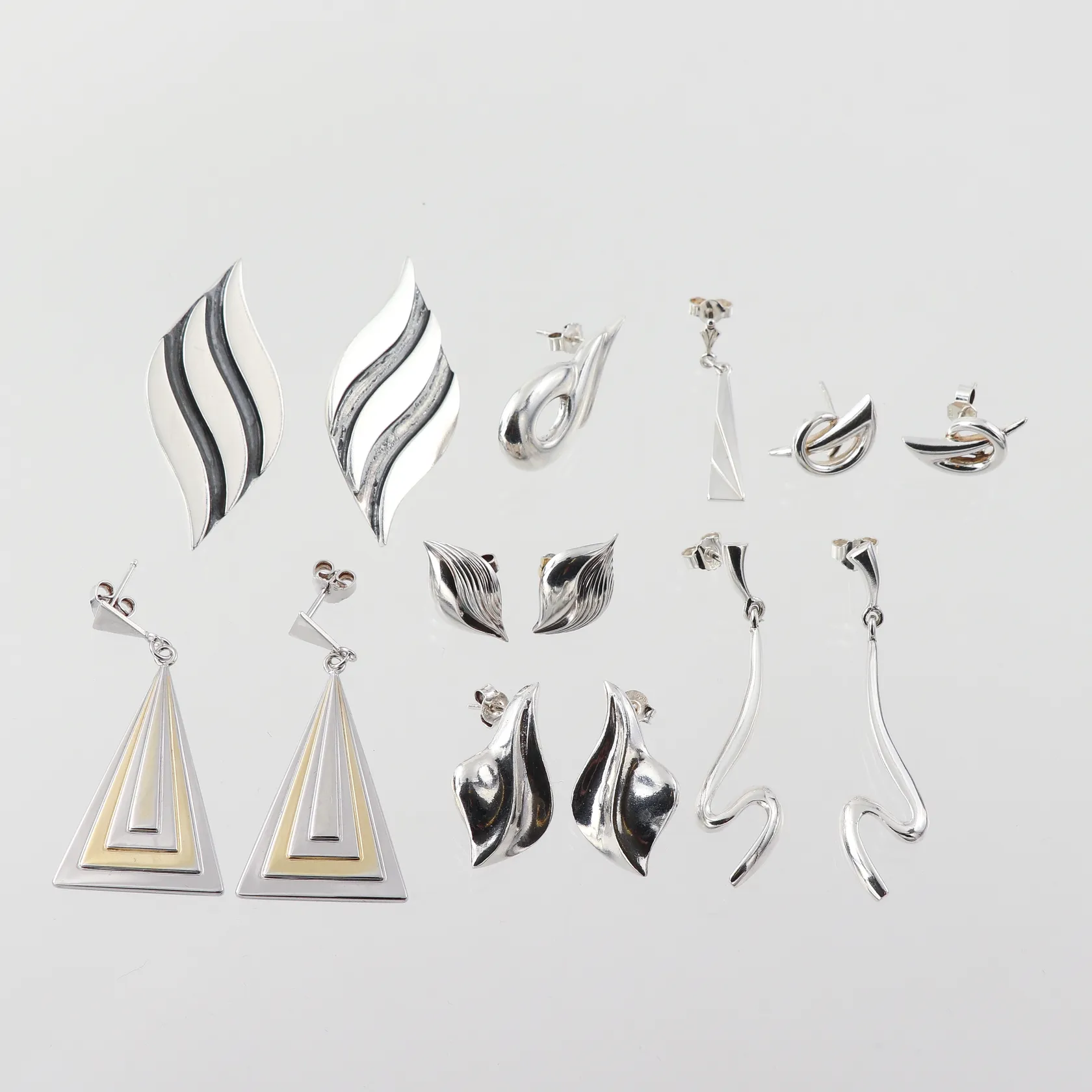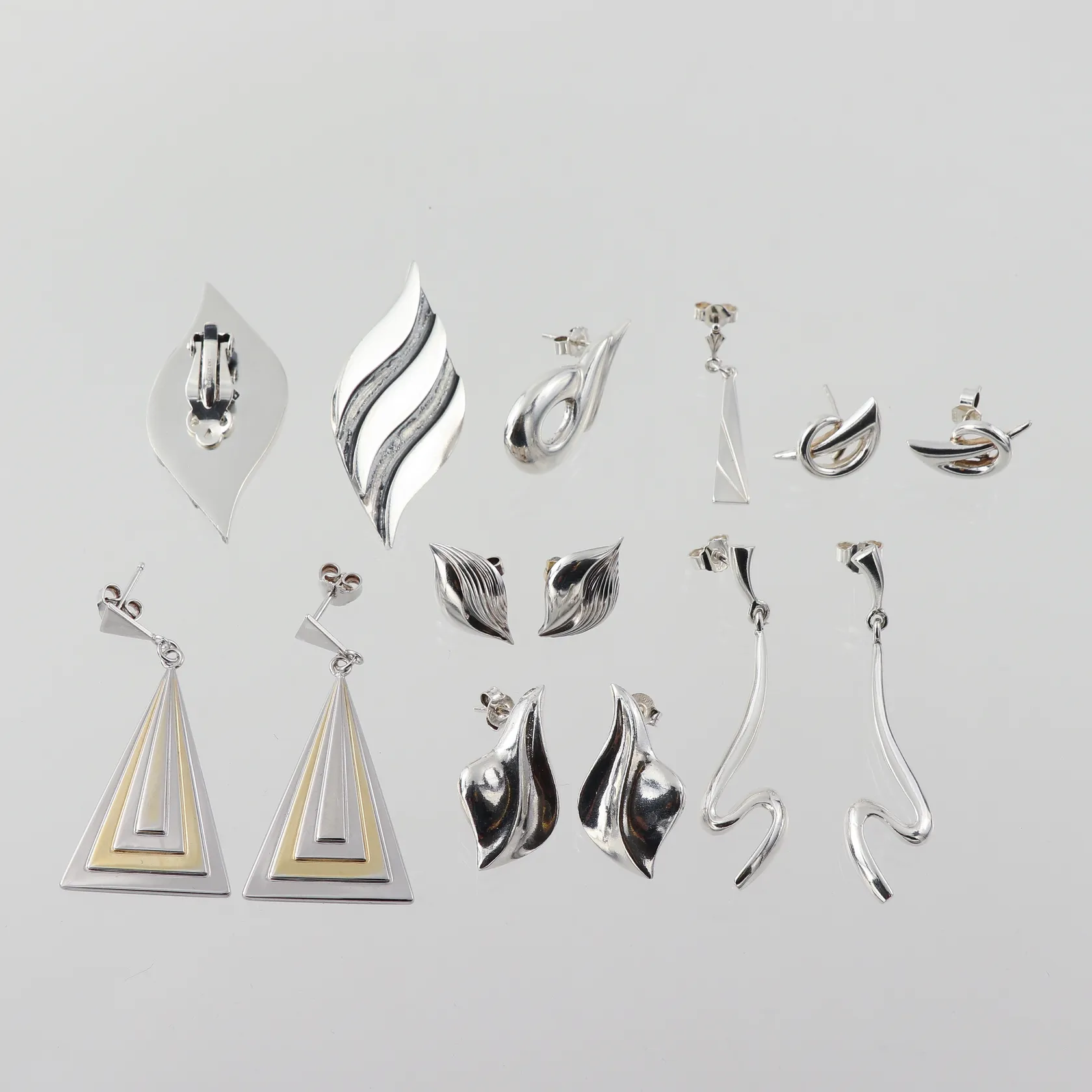 Parörhängen 6st silver varav ett par klipps + 2st udda örhängen silver Vikt: 42,7 g.