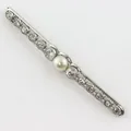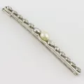 Brosch med pärla och diamanter ca 1x0,15ct och resterande gammalslipade diamanter ca 1x0,15ct, ca 2x0,10ct och ca 8x0,05ct ca WP, Thomassons Guld-& Juvelfirma Erik Stockholm 1934, längd ca 6 cm, Platina Vikt: 4,9 g.
