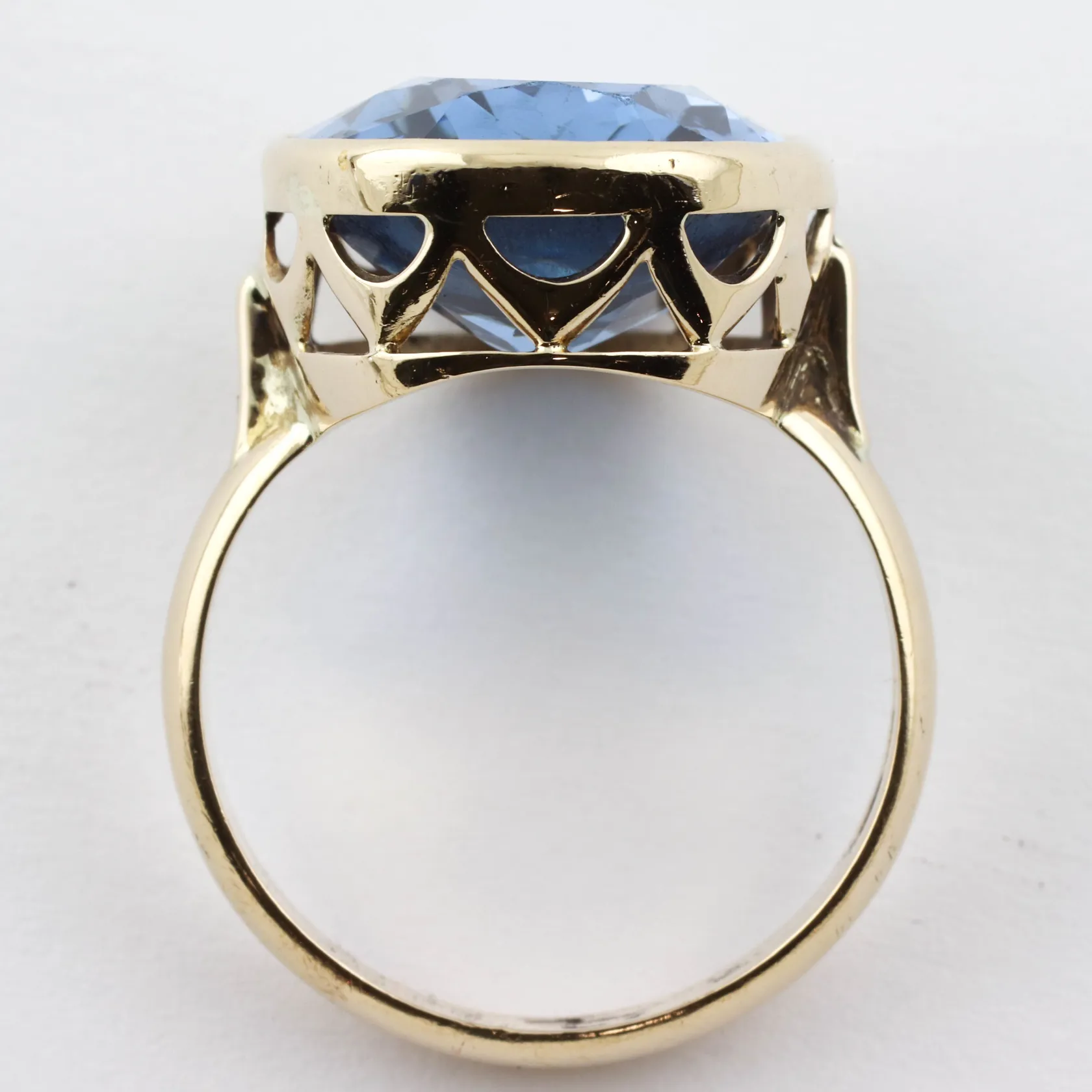 Ring med stor oval blå syntetisk spinell