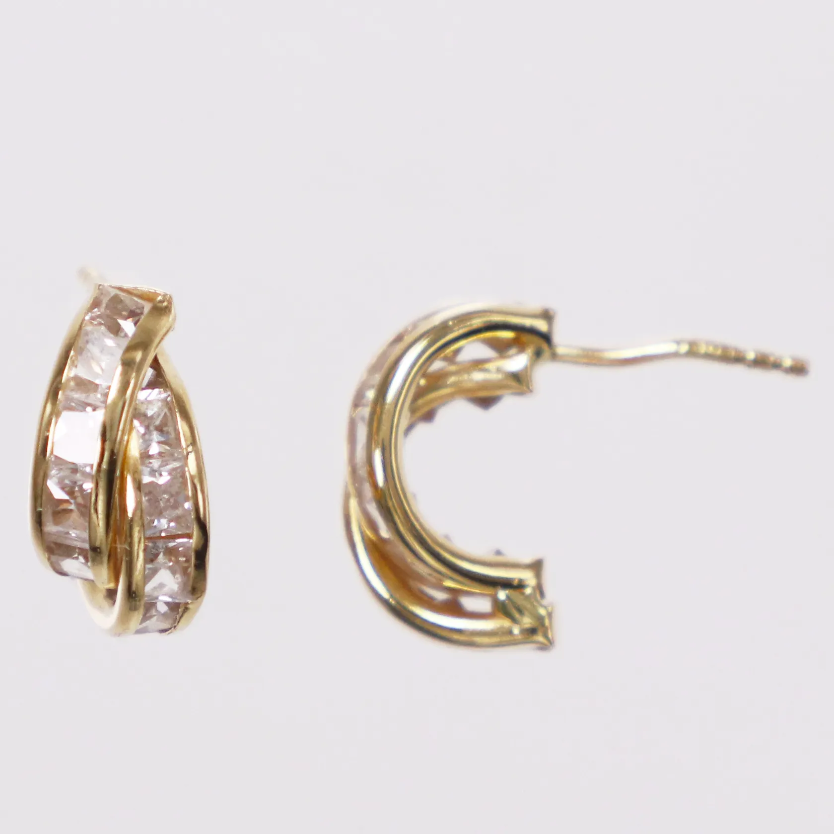 Ett par örhängen vita stenar, 12mm, Guldfynd, skeva stift, plaststoppar, 18K Vikt: 1,7 g.