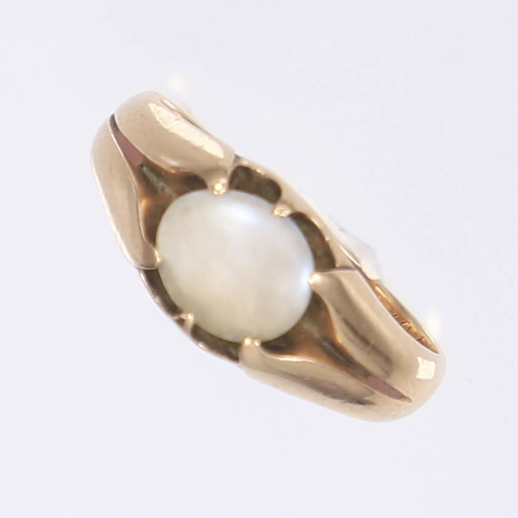 Ring med månsten, stl 17¾, bredd 3-9mm, gravyr, stämplad på utsidan skenan, 18K Vikt: 4,2 g.