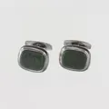 Ett par manschettknappar med gröna stenar, stämplat Rusch, ca 21x17mm, silver 835/1000 Vikt: 13,6 g.