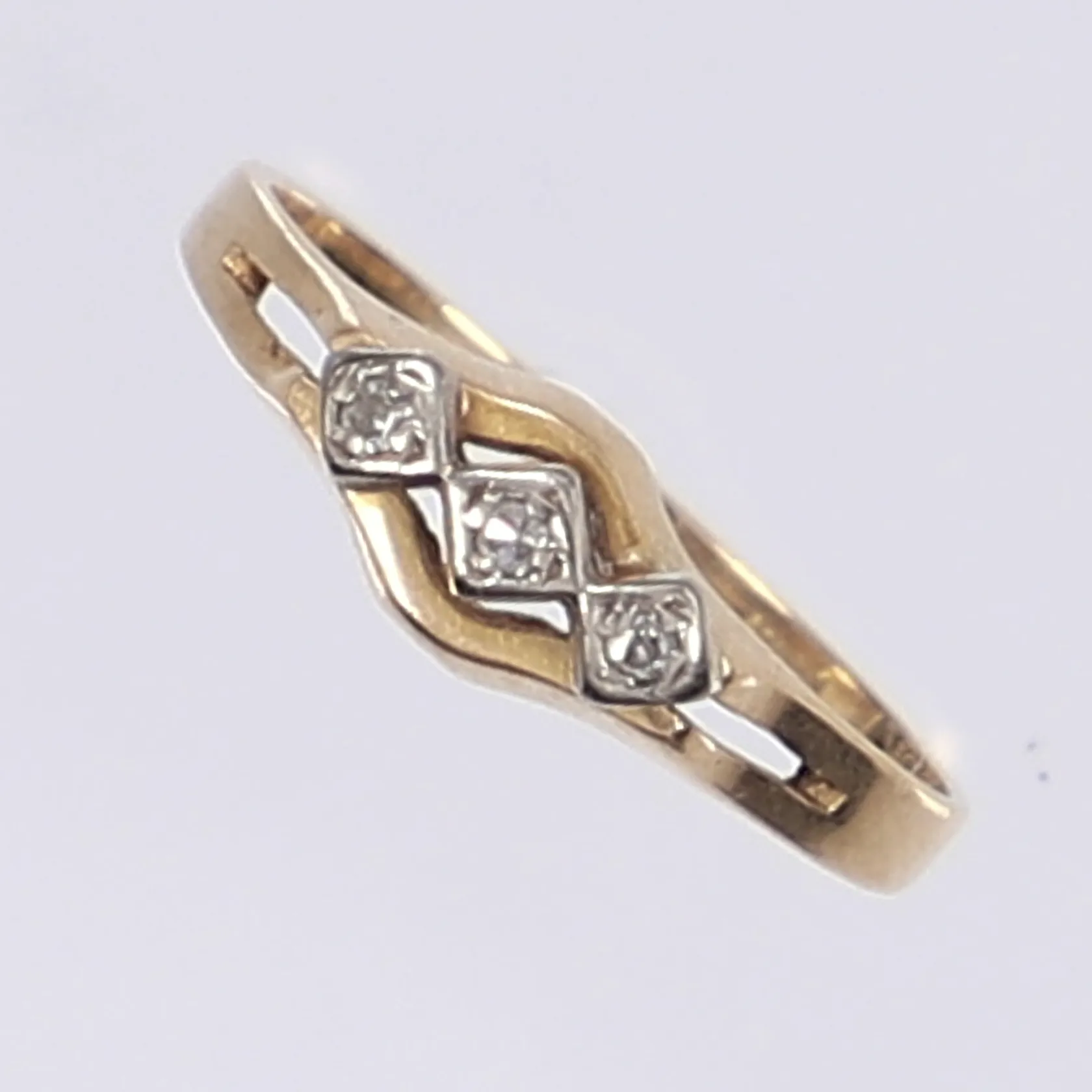 Ring med diamanter totalt 0,03ctv enligt gravyr, stl 15, bredd 1-5mm,18K Vikt: 1,3 g.