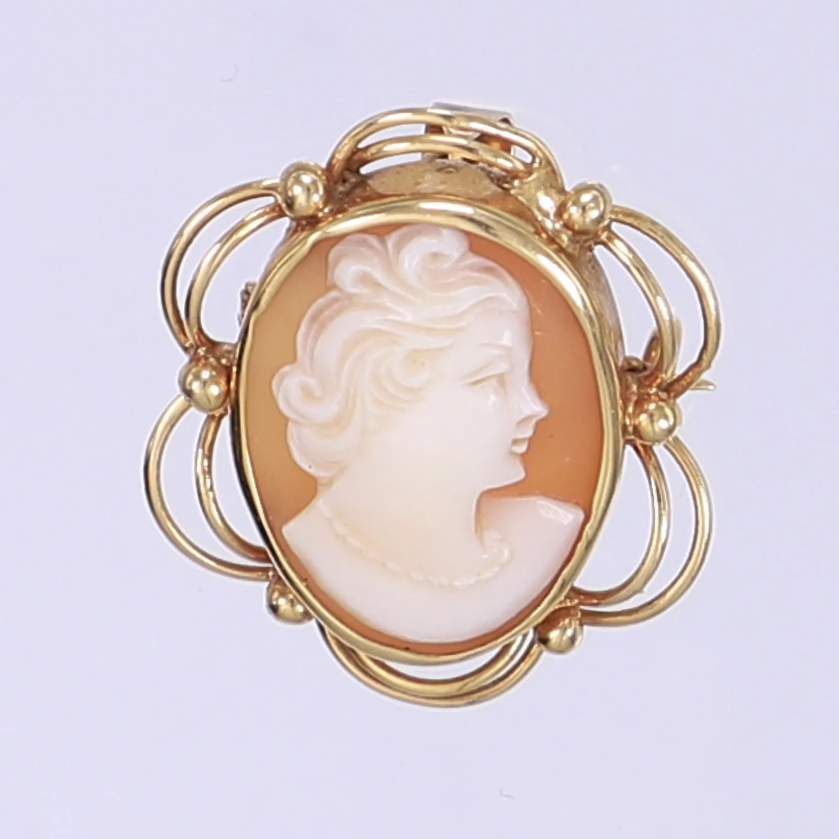 Hänge/brosch med camé, 29x22mm, 18K Bruttovikt: 4,6g Vikt: 6 g.