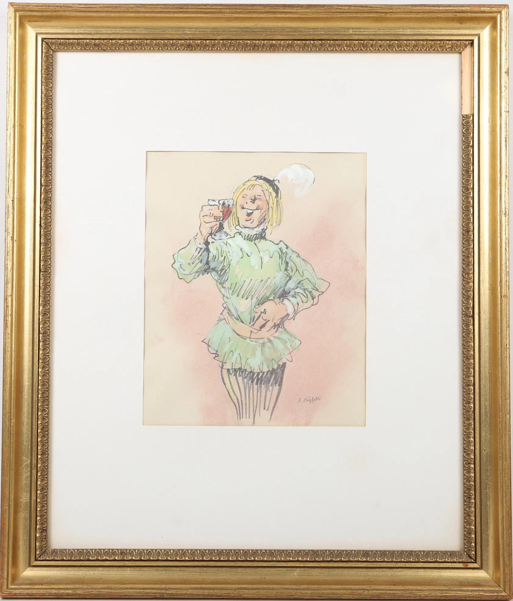 Tavla, Robert Högfeldt, akvarell, signerad, dagmått 26x21, vågigt papper, gulnad, ej examinerad ur ram. Skickas med postpaket. Omfattas av BUS-avgift.