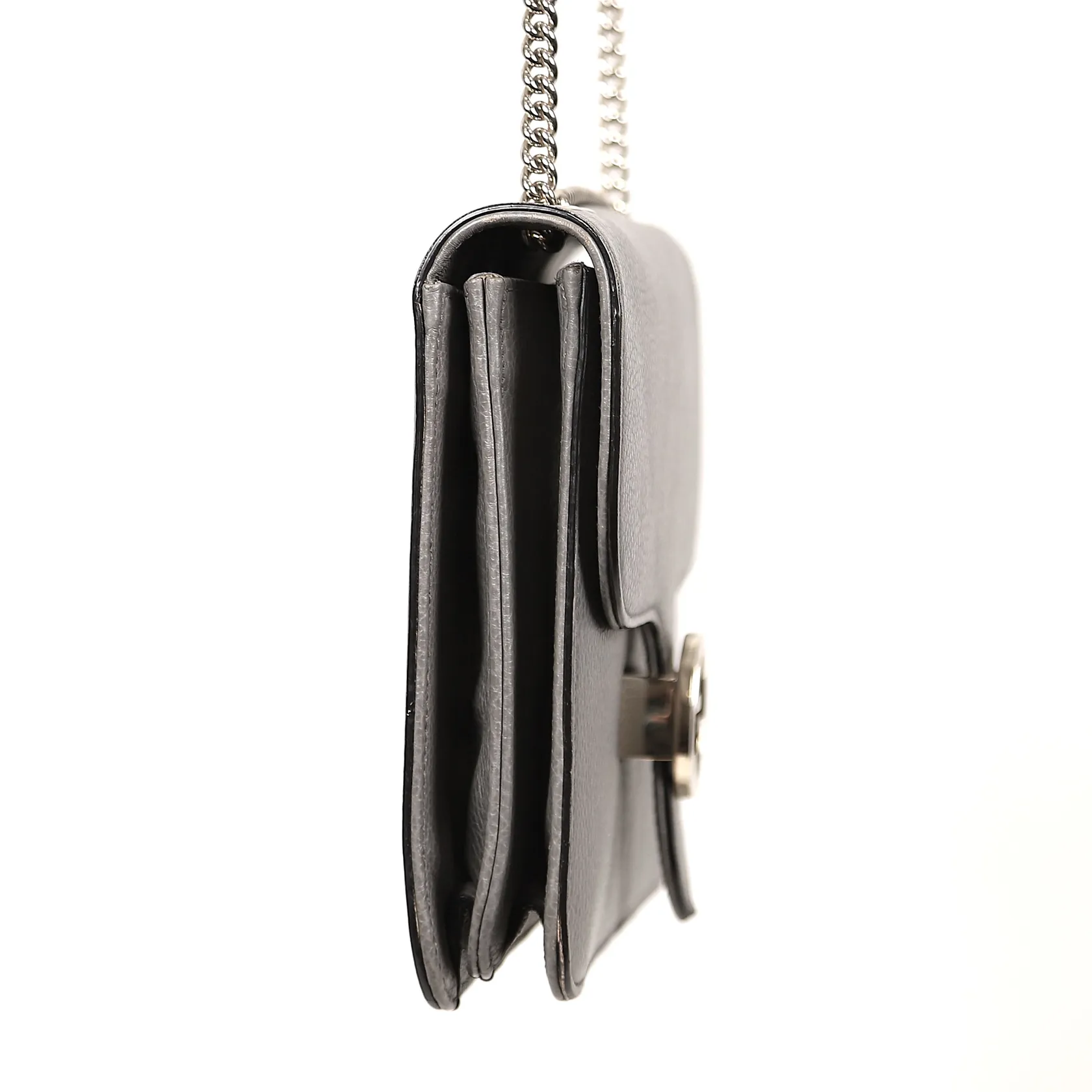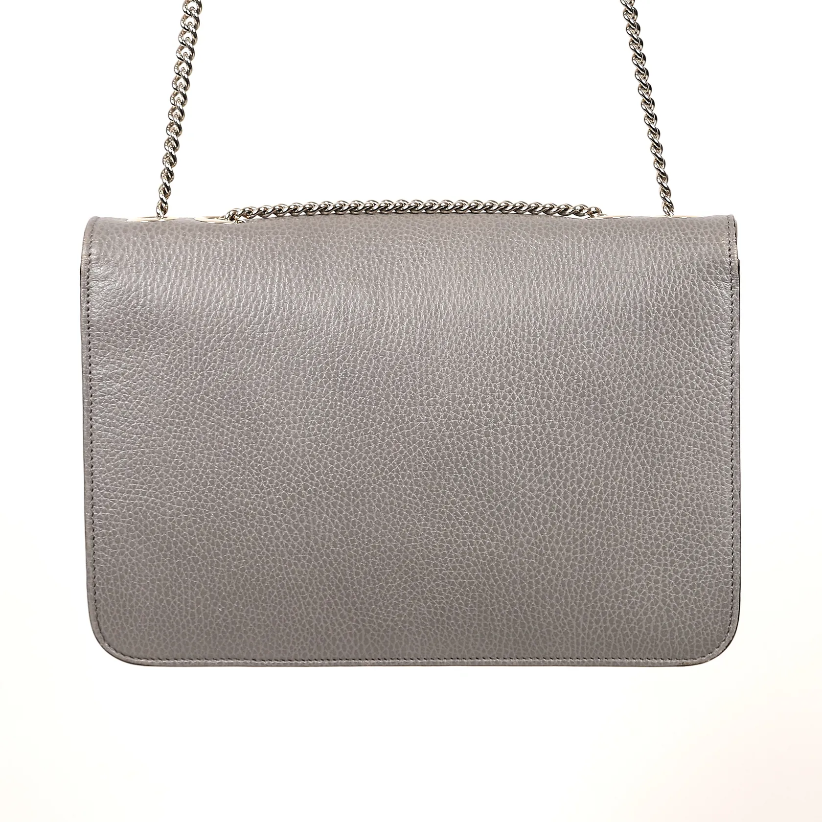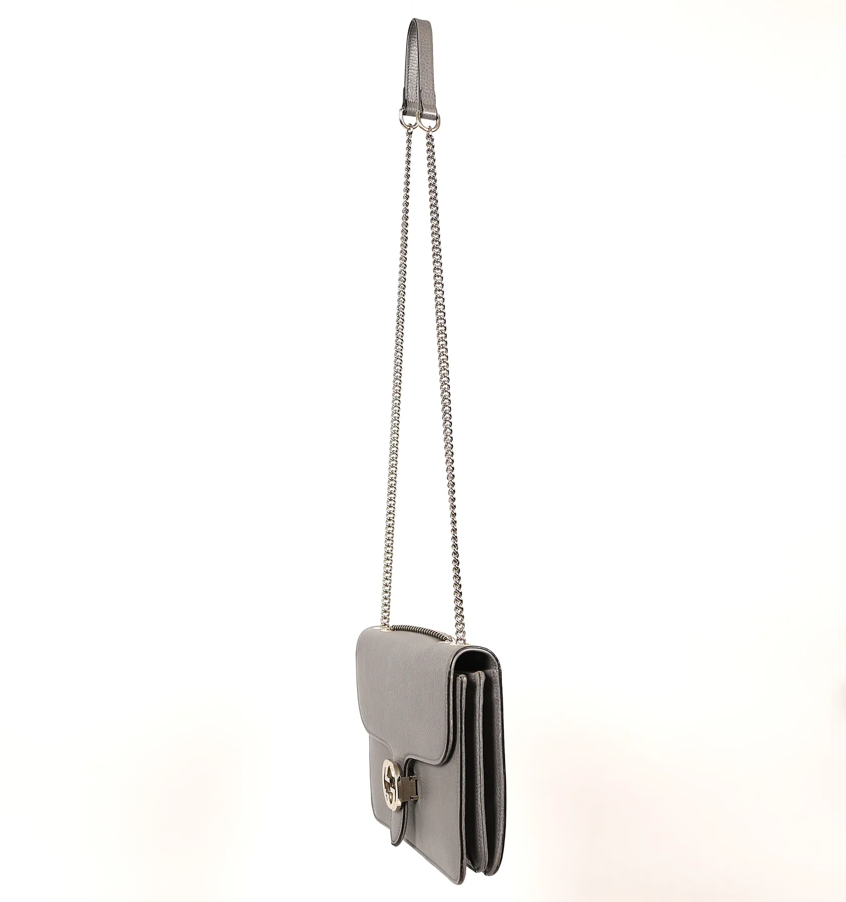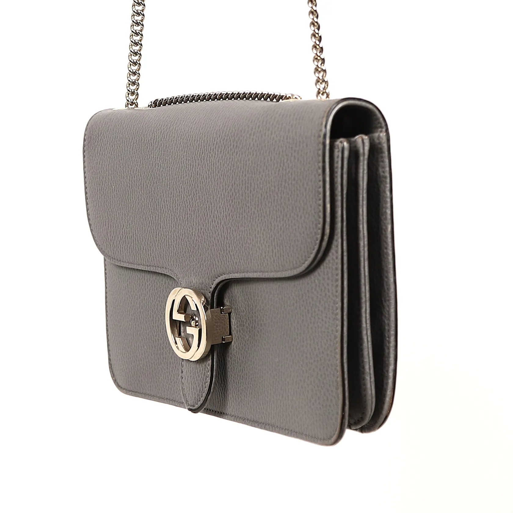 Väska, Gucci, Interlocking G, numrerad 510303 527066, grått präglat kalvskinn, kromat monogrambeslag och kedja, två fack invändigt samt en dragkedjeförsedd ficka, ca 20x28x5cm, kvitto 2019, England, bruksslitage, repor, invändigt fläckar. med repor och missfärgningar utvändigt och invändigt, kvitto samt dustbag.