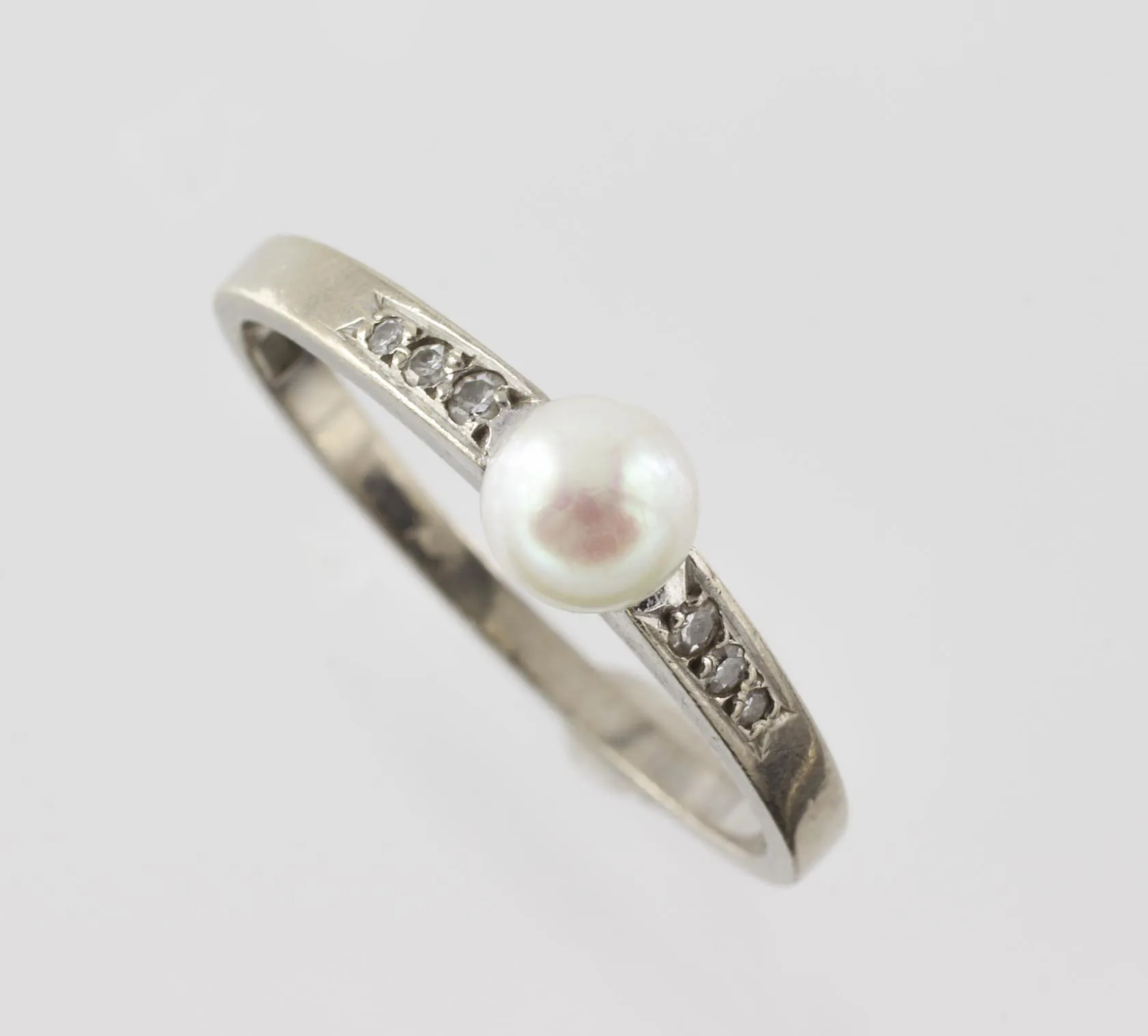 Ring med pärla och små diamanter 0,05ct, Ceson Guldvaru Ab 1984, stl 17mm, 18k vitguld Vikt: 2,4 g.