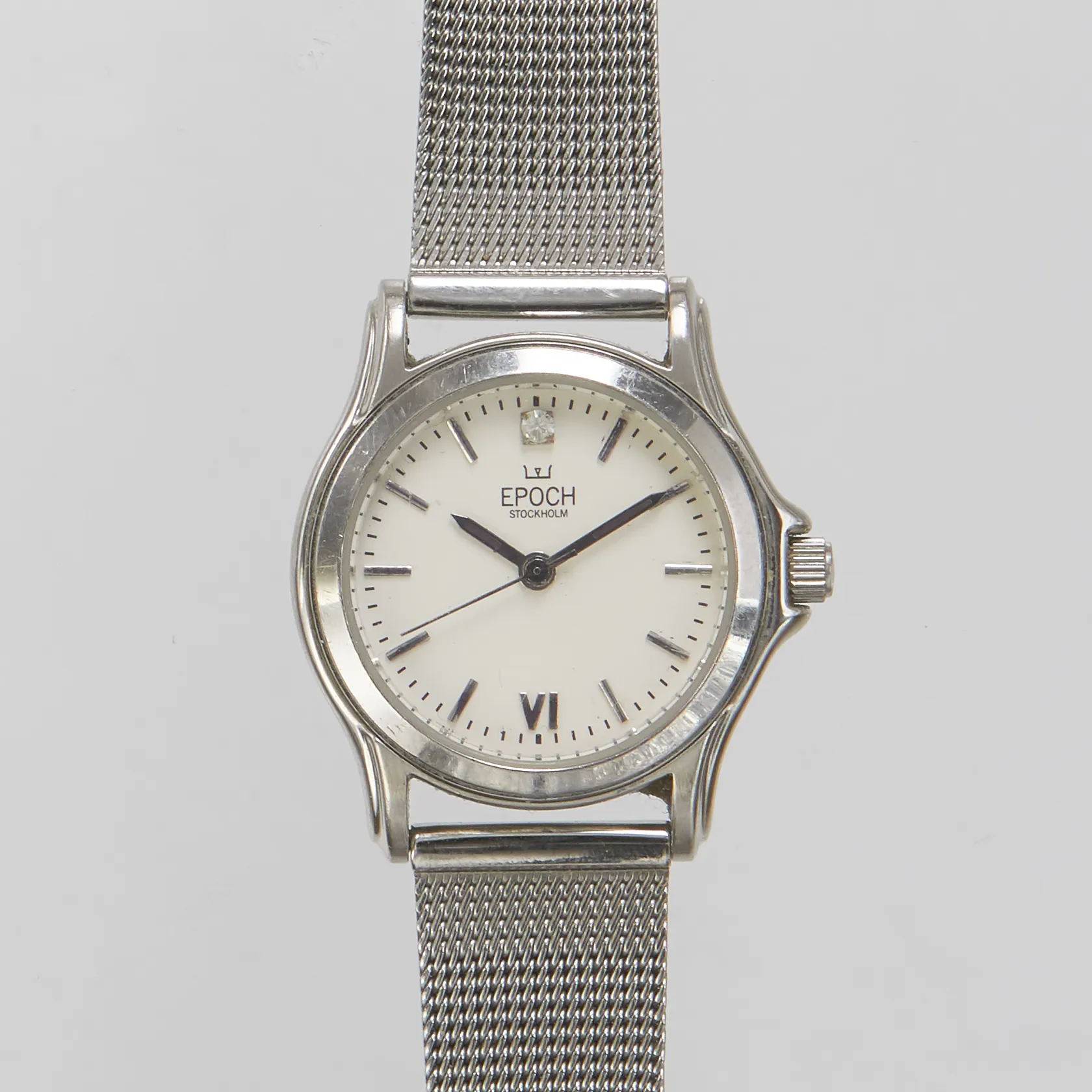 Damur Epoch, stål, quartz, 26mm, skadad urtavla, repigt glas, armband ej original, opersonlig gravyr, inga tillbehör.